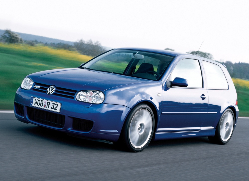 En 2002 llega el Volkswagen Golf R32 de la mano de la cuarta generación. Es considerado el más bruto de la historia del Volkswagen Golf, ya que equipaba un motor V6 de 3.2 litros y aspiración natural con 250 CV, asociado a una transmisión manual o automática y a un sistema de tracción integral. Su sonido y su estética caló rápidamente entre los entusiastas. Es el padre del actual Volkswagen Golf R (prueba).