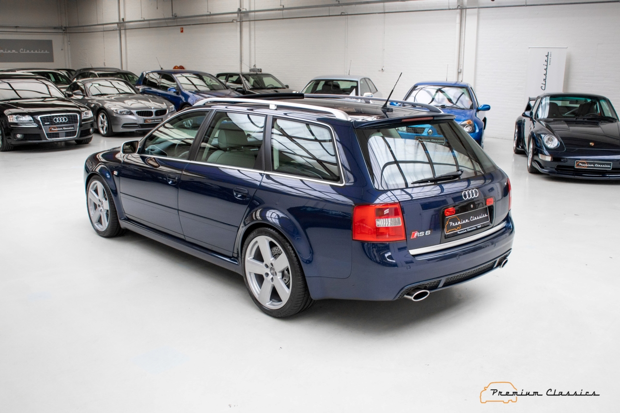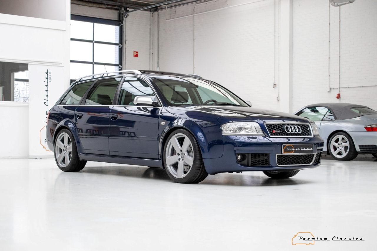 El primer del Audi RS 6 (prueba) llegó en 2002, de mano de la segunda generación del Audi A6, conocida con el código C5. Esta variante equipaba unos parachoques específicos, retrovisores en plateado, llantas de gran tamaño y dos salidas de escape ovaladas en la zaga. También había un alerón trasero montado en el techo, junto a las barras longitudinales características de las versiones Avant de Audi.
