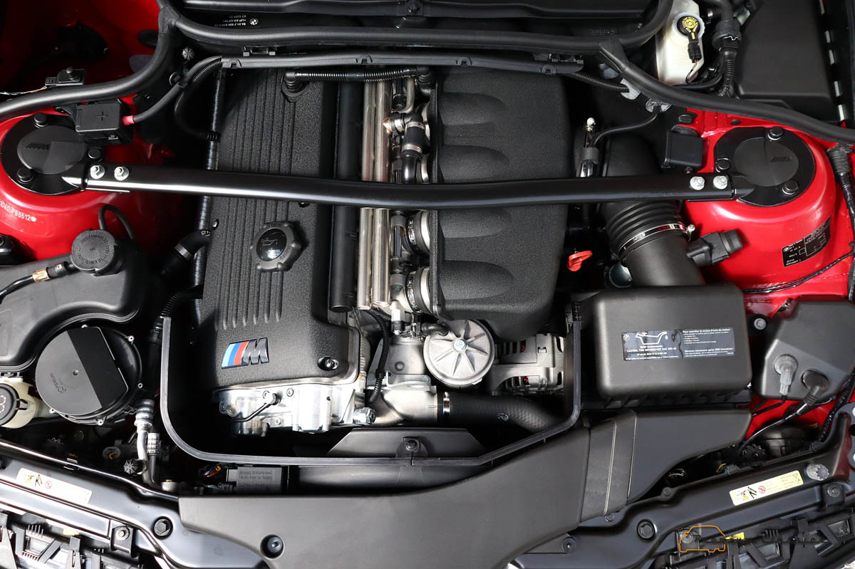 Este BMW M3 E46 está equipado con un fantástico motor de seis cilindros en línea atmosférico, el último de esta clase que montó un M3. Se trata de una unidad con 3.246 cc que en su momento desarrollaba una potencia máxima de 343 CV a 7.900 rpm y un par motor de 365 Nm a 4.900 vueltas. Rendimiento suficiente para que pudiera acelerar de 0 a 100 km/h en 5,2 segundos y para que alcanzara una velocidad máxima limitada a 250 km/h.