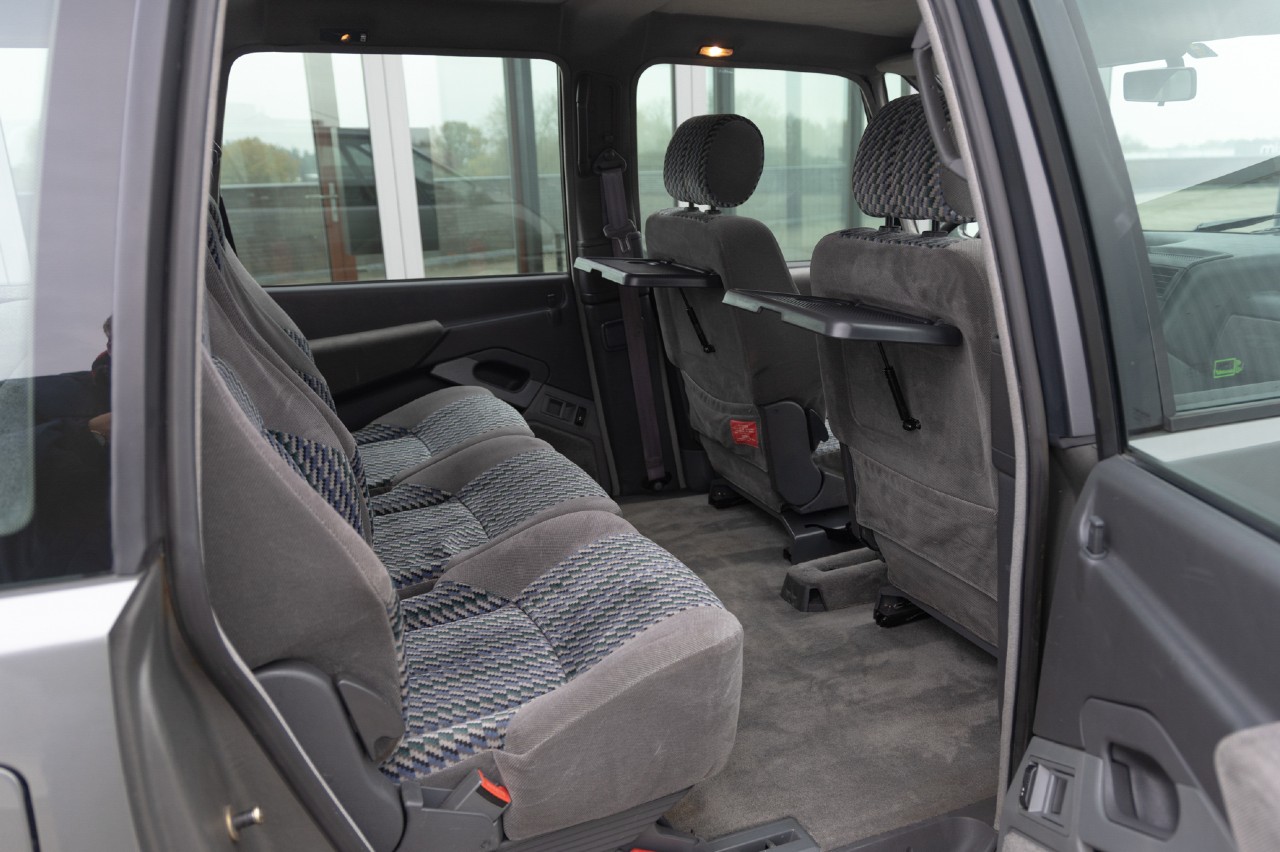 Además, las butacas de la primera y segunda fila se podían girar y se podía crear un espacio para dormir. Los asientos de la segunda fila también se pueden deslizar hacia delante y hacia atrás y tienen respaldos reclinables. El equipamiento incluye aire acondicionado en pleno funcionamiento, radio Pioneer original y mesas plegables en la parte trasera.