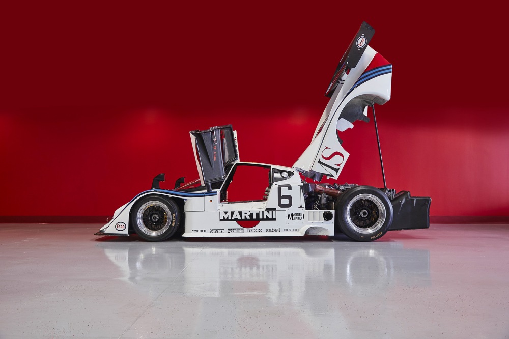 Este es uno de los cuatro ejemplares del primer coche de carreras con efecto suelo. El Lancia LC1 Grupo VI de 1982 presenta un diseño muy aerodinámico, con una cabina abierta y ruedas traseras carenadas bajo un alerón trasero fijo regulado. Esta combinación fue suficiente para asegurarle la victoria en los 1.000 km de Nürburgring de 1982, con Teo Fabi y Riccardo Patrese detrás del volante. Tras esta victoria, este LC1 de más de 450 CV logró dos segundos puestos y una pole position.
