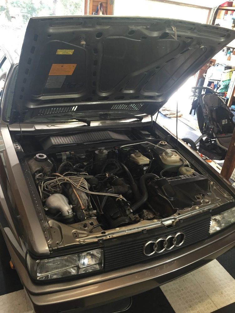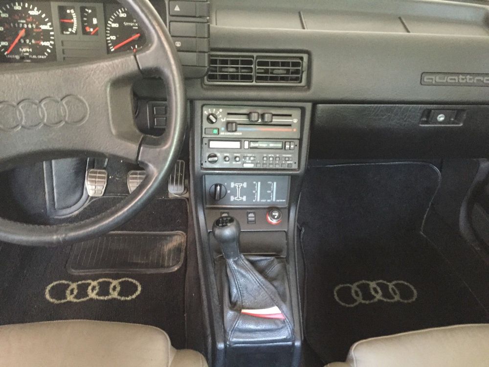 Los faros delanteros de este Audi Quattro Coupé han sido reemplazados por los de especificación europea (recordemos que está en Estados Unidos), un nuevo parachoques delantero, el turbo ha sido reconstruido, nuevos frenos y pinzas de doble pistón delanteras, nuevas articulaciones de la suspensión y todos los manguitos del sistema de refrigeración del motor.