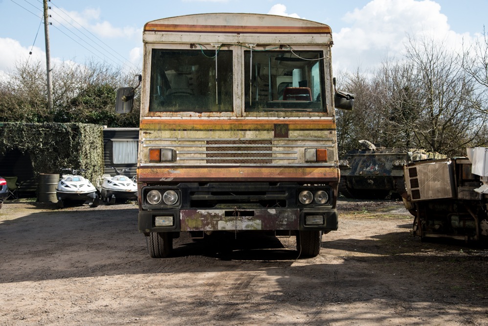 En la parte trasera del autobús se encuentra un escritorio de oficina, con un techo practicable auxiliar el cual dispone de un motor para bombear aire limpio al interior, mientras que la cabina podía sellarse en caso de atentado químico, ya fuera arma biológica o nuclear. Al mismo tiempo, cuenta con 28.000 kilómetros en el odómetro y durante los años 80 también fue utilizado para transportar pasajeros desde el aeropuerto de Derry a Belfast.