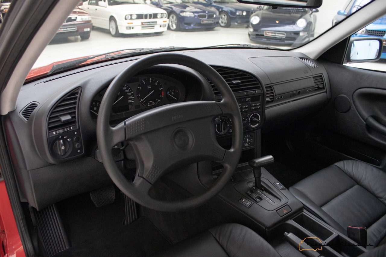 Este 320i está en perfectas condiciones, solo tiene 55.000 kilómetros y viene acompañado de un completo historial de servicio. Solo ha tenido un propietario, en Alemania, un poco sibarita, ya que equipó al Serie 3 con todos los extras posibles cuando lo compró en 1993.