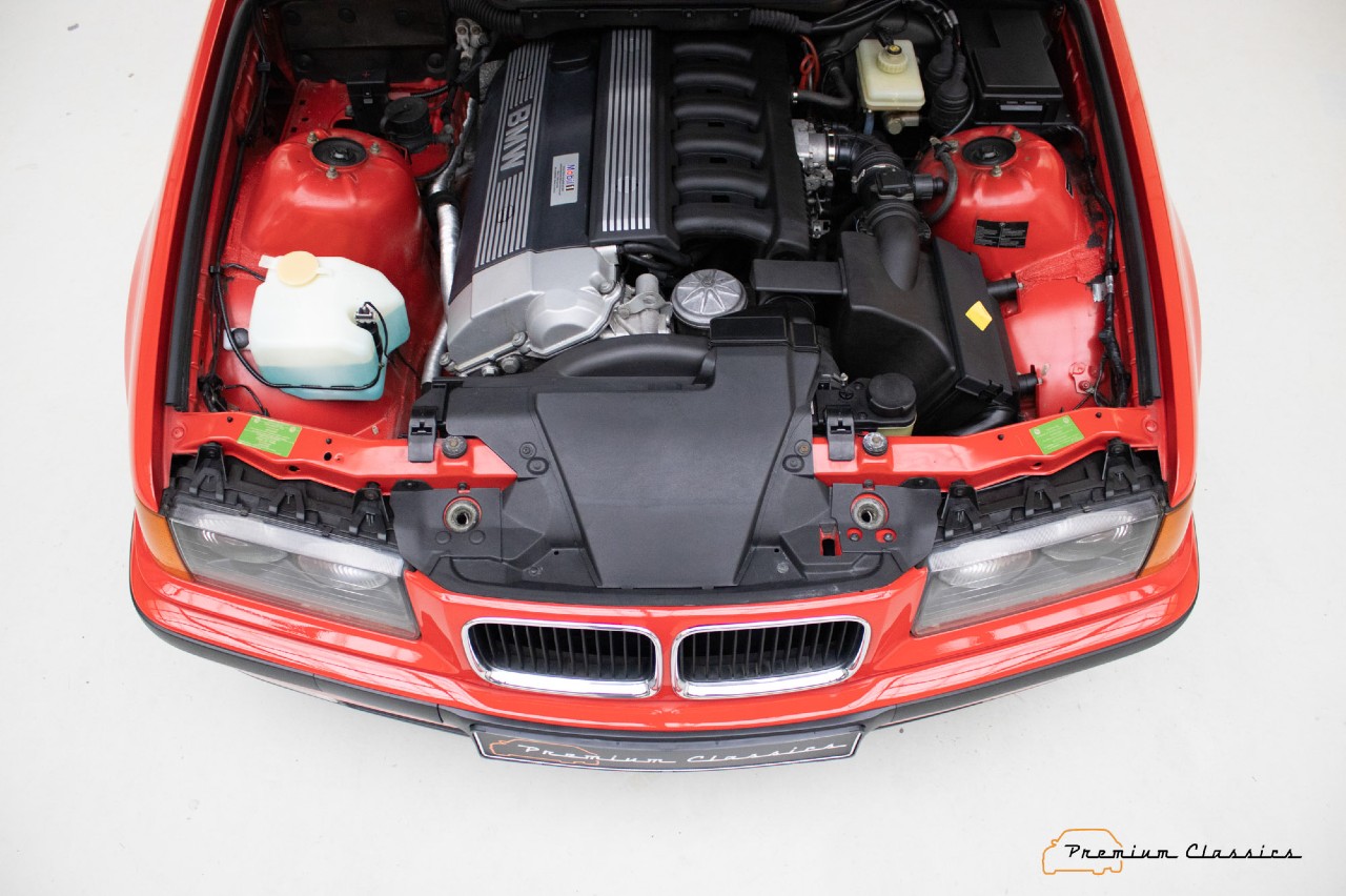 El coche sale a la venta a través de la web Premium Classic y está en un estado completamente original, incluida su pintura roja. Es difícil encontrar una unidad en este estado de conservación y con un kilometraje tan bajo, por lo que es una oportunidad única para disfrutar de un Serie 3 “analógico”.