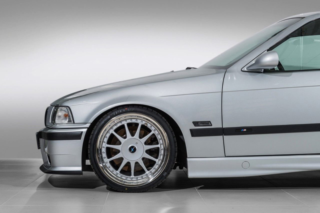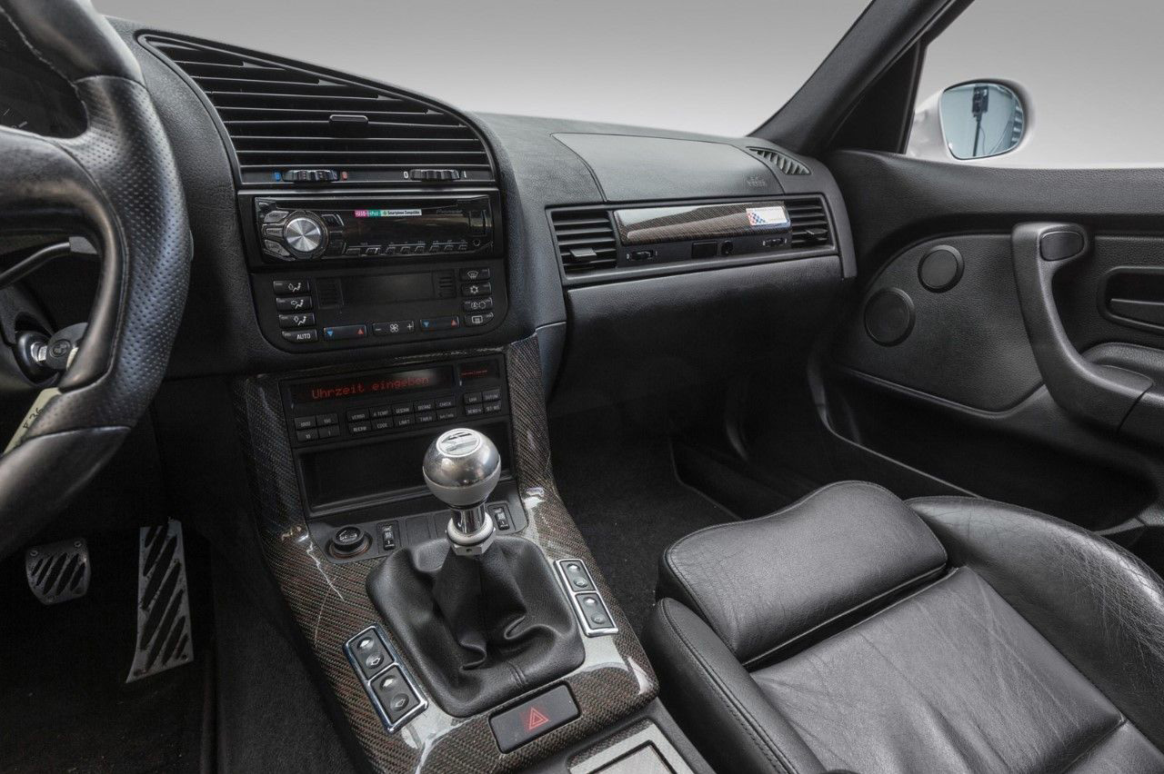 Como por ejemplo, un conjunto de suspensiones provenientes del BMW M3 E36 (prueba), un equipo de frenos sobredimensionado o unos neumáticos de altas prestaciones calzados sobre unas llantas Hartage (son réplicas, eso sí). A esto hay que añadir las modificaciones estéticas, con un kit M completo para el exterior (incluyendo unas aletas traseras ensanchadas) e interior, con los asientos provenientes igualmente del M3 E36.