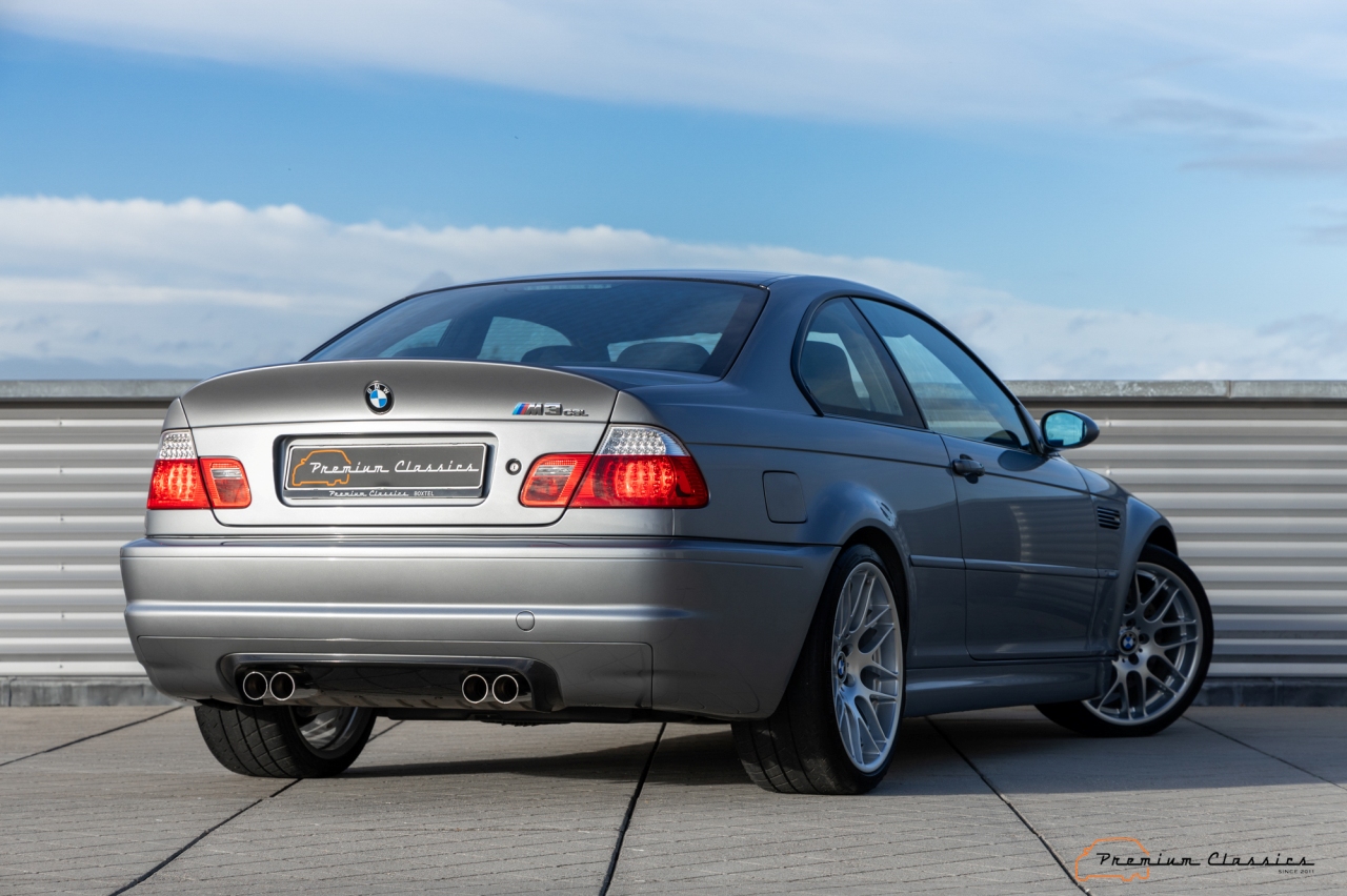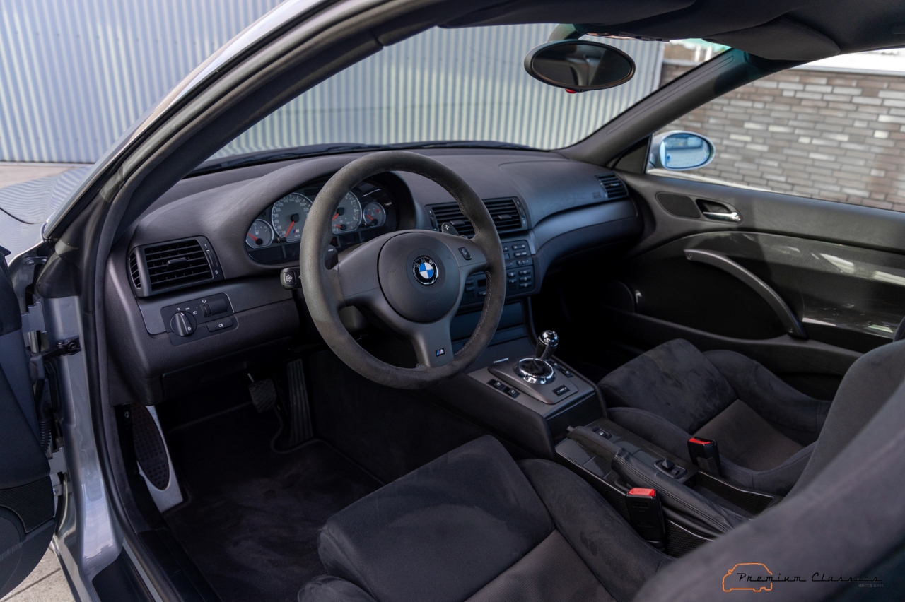 Según la descripción del anuncio de venta, esta unidad fue entregada nueva en Países Bajos en enero de 2004 y es uno de los 841 ejemplares del M3 CSL con volante a la izquierda que salieron de fábrica. Nunca ha sido repintado, se han realizado todos los mantenimientos en concesionario oficial BMW (con todos los sellos y facturas) y tan solo acumula 18.996 kilómetros recorridos en casi dos décadas.
