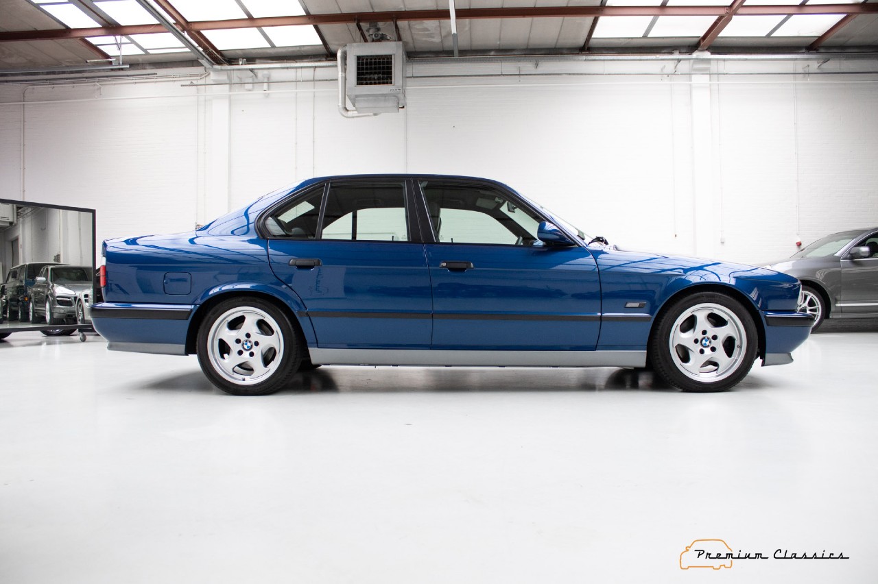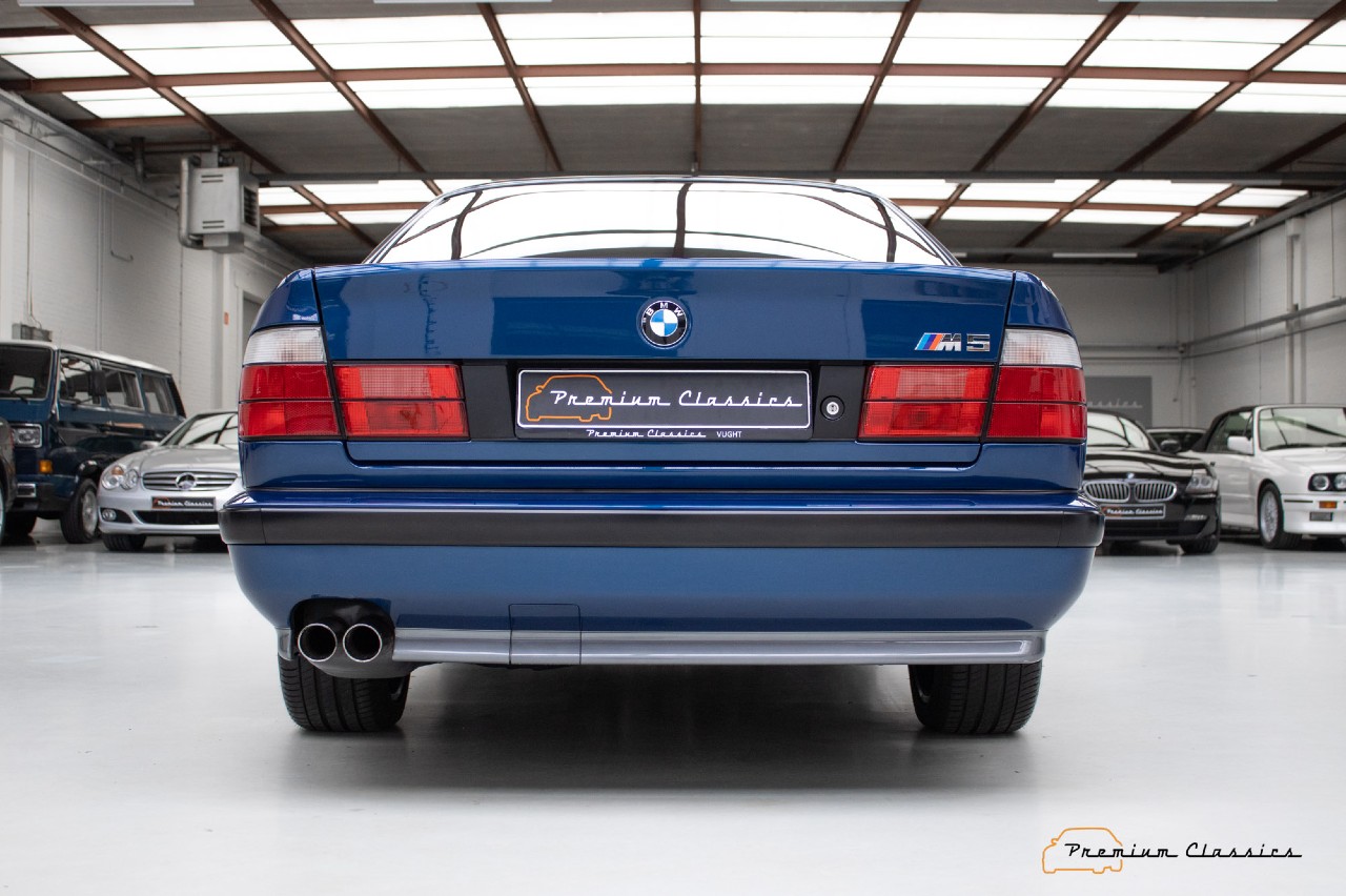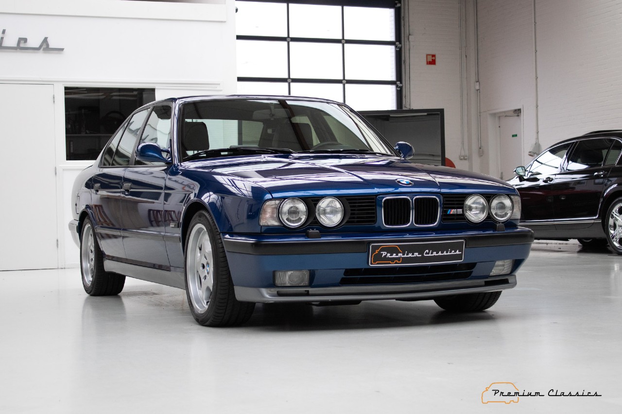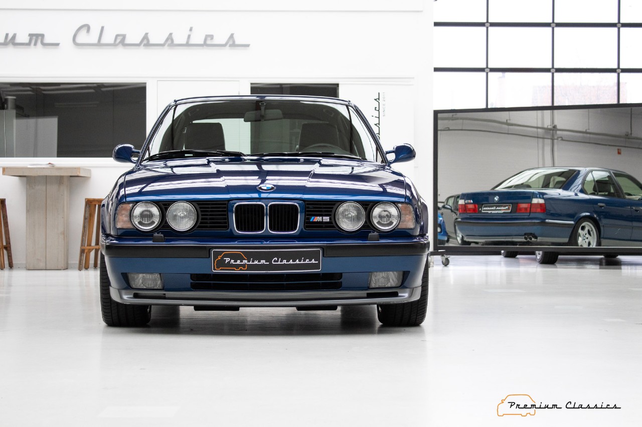 Sí, 41.700 kilómetros recorridos en estas casi tres décadas de vida. Aunque la generación E34 de la Serie 5 no es a menudo muy recordada, el M5 sí es especial, porque fue el último construido a mano en la planta de Garching. Esta unidad que ves aquí presenta un estado óptimo y, además, un bonito color Avus Blue.
