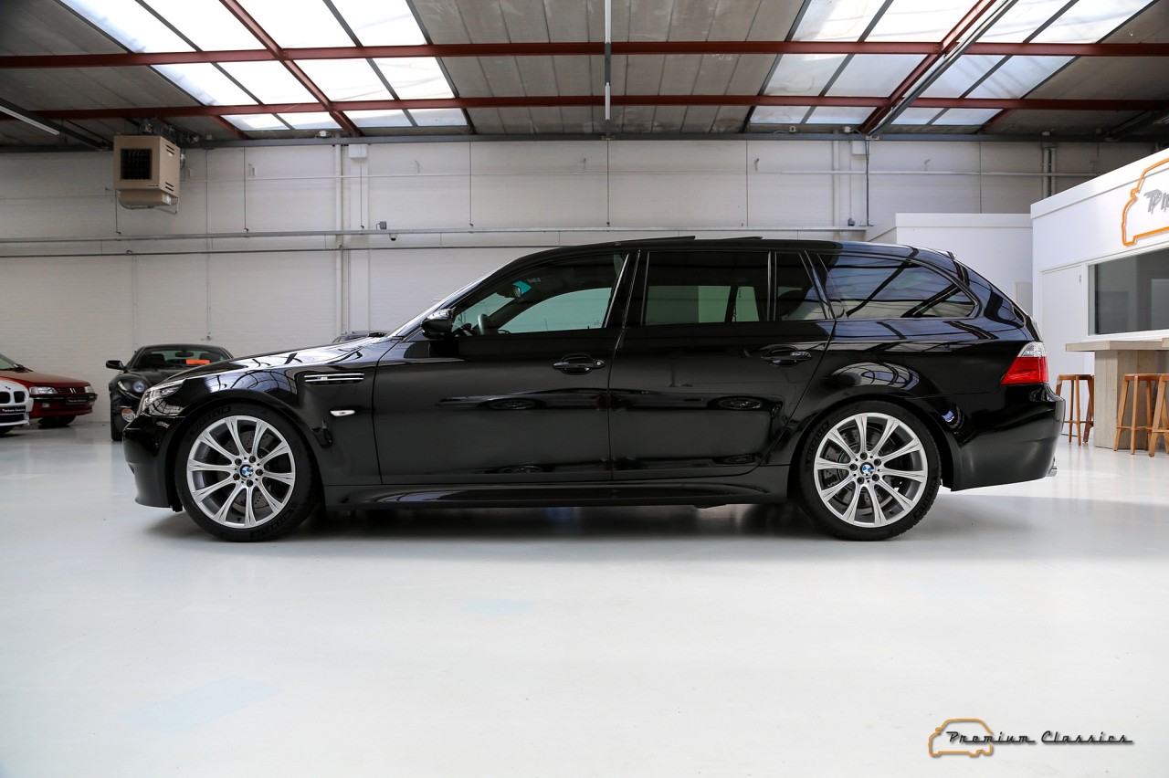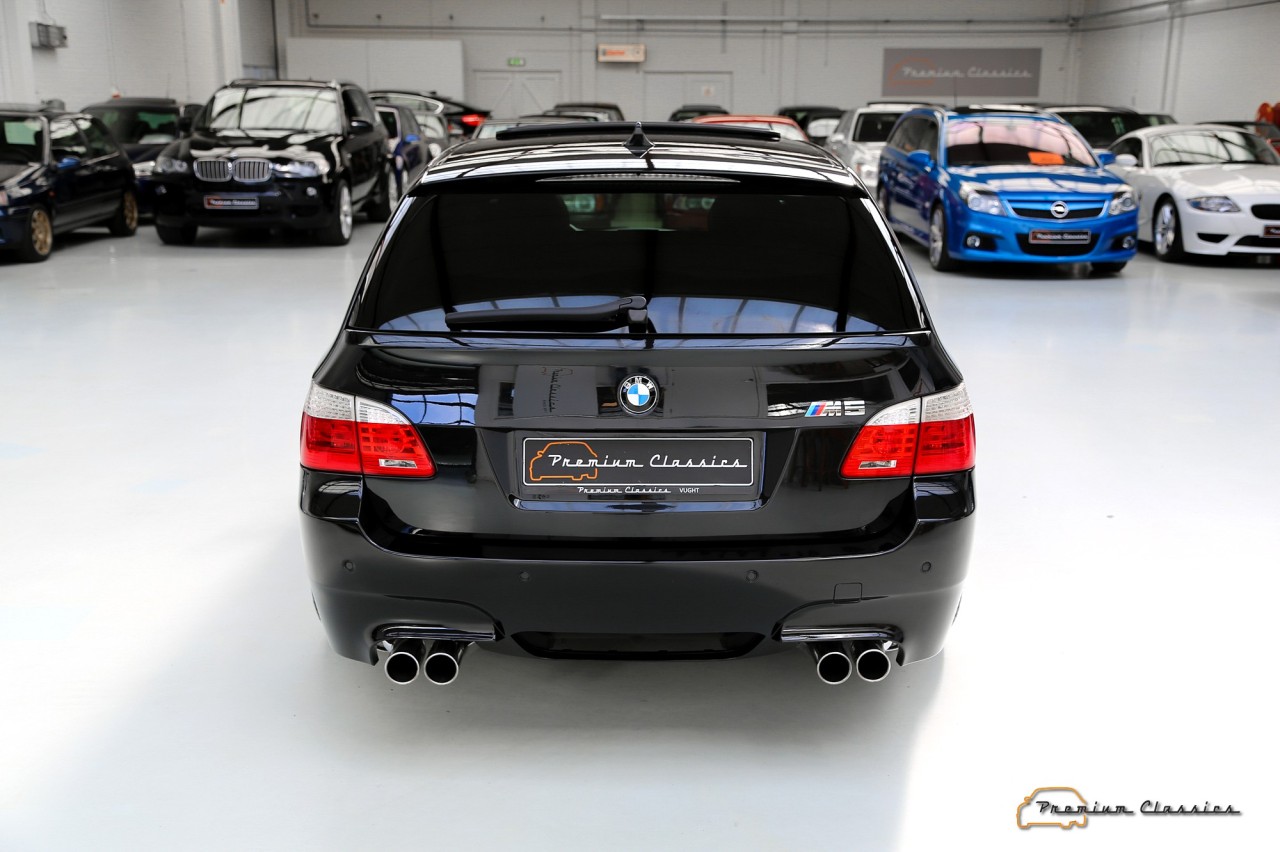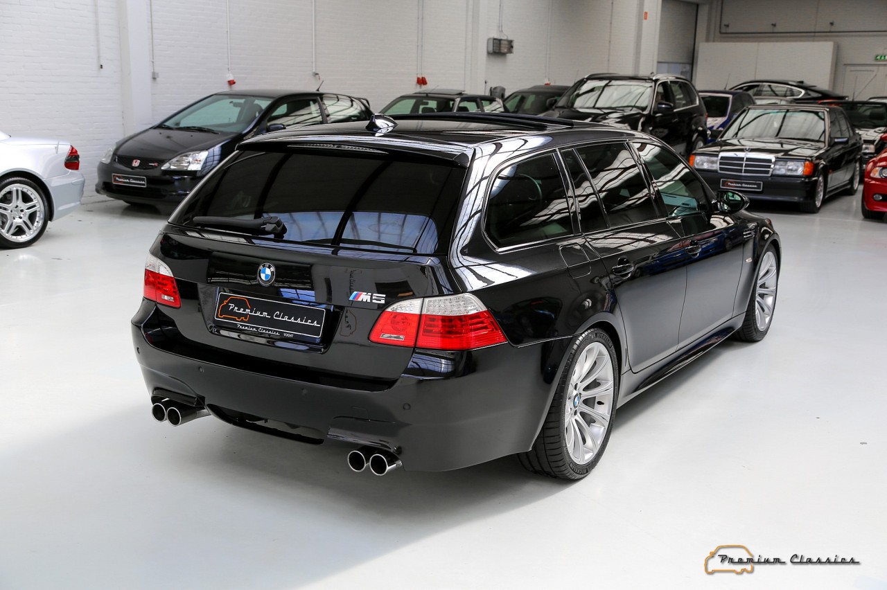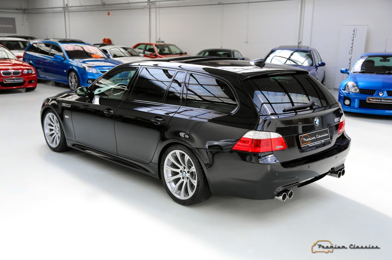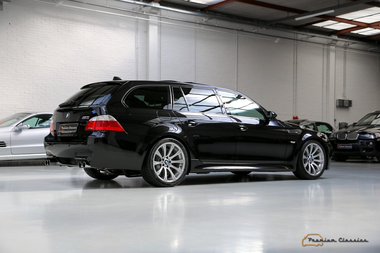 El propulsor era unidad de aspiración natural inspirado en la Fórmula 1. Asociado a un cambio automático SMG III y a un sistema de propulsión trasera, el último de los M5 familiares pasaba de 0 a 100 km/h en 4,8 segundos y podía alcanzar una velocidad máxima de 320 km/h, aunque su velocidad se limitó electrónicamente a 250 km/h. Además, seguía siendo un vehículo familiar de segmento E, con espacio para cinco pasajeros y un maletero de 500 litros.