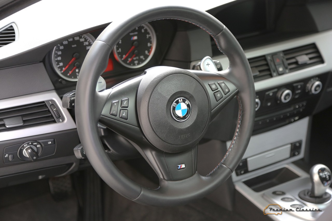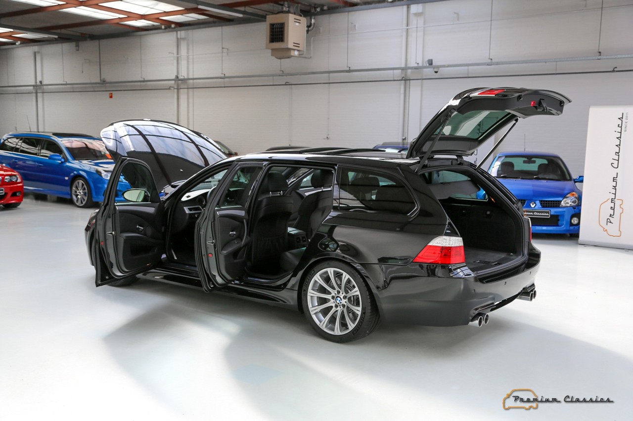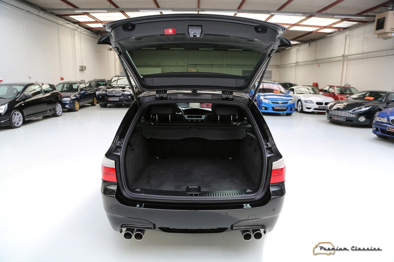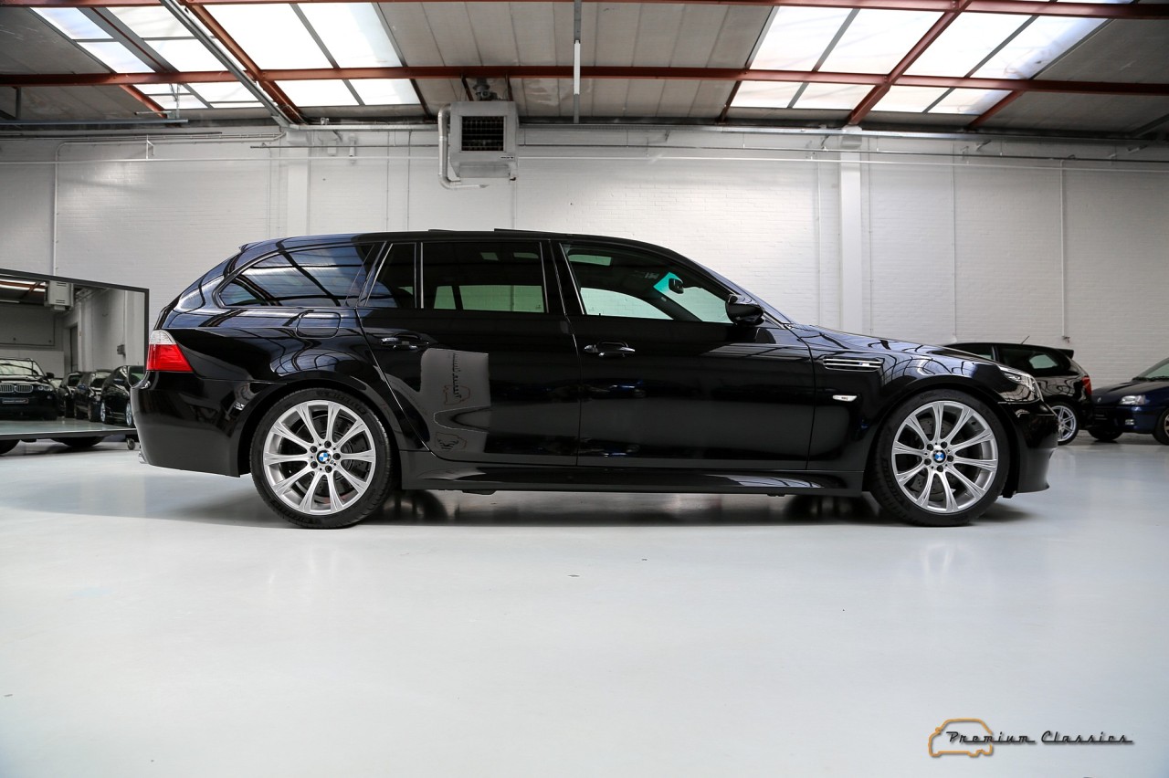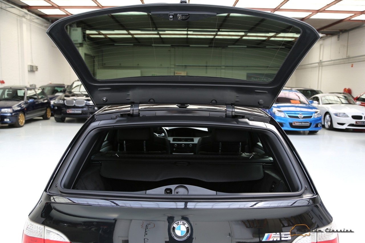 El propulsor era unidad de aspiración natural inspirado en la Fórmula 1. Asociado a un cambio automático SMG III y a un sistema de propulsión trasera, el último de los M5 familiares pasaba de 0 a 100 km/h en 4,8 segundos y podía alcanzar una velocidad máxima de 320 km/h, aunque su velocidad se limitó electrónicamente a 250 km/h. Además, seguía siendo un vehículo familiar de segmento E, con espacio para cinco pasajeros y un maletero de 500 litros.