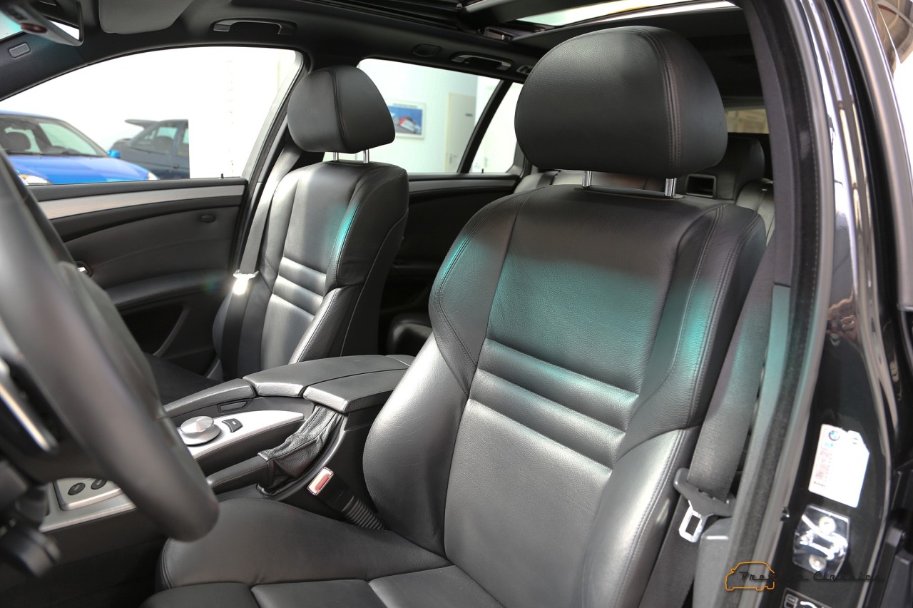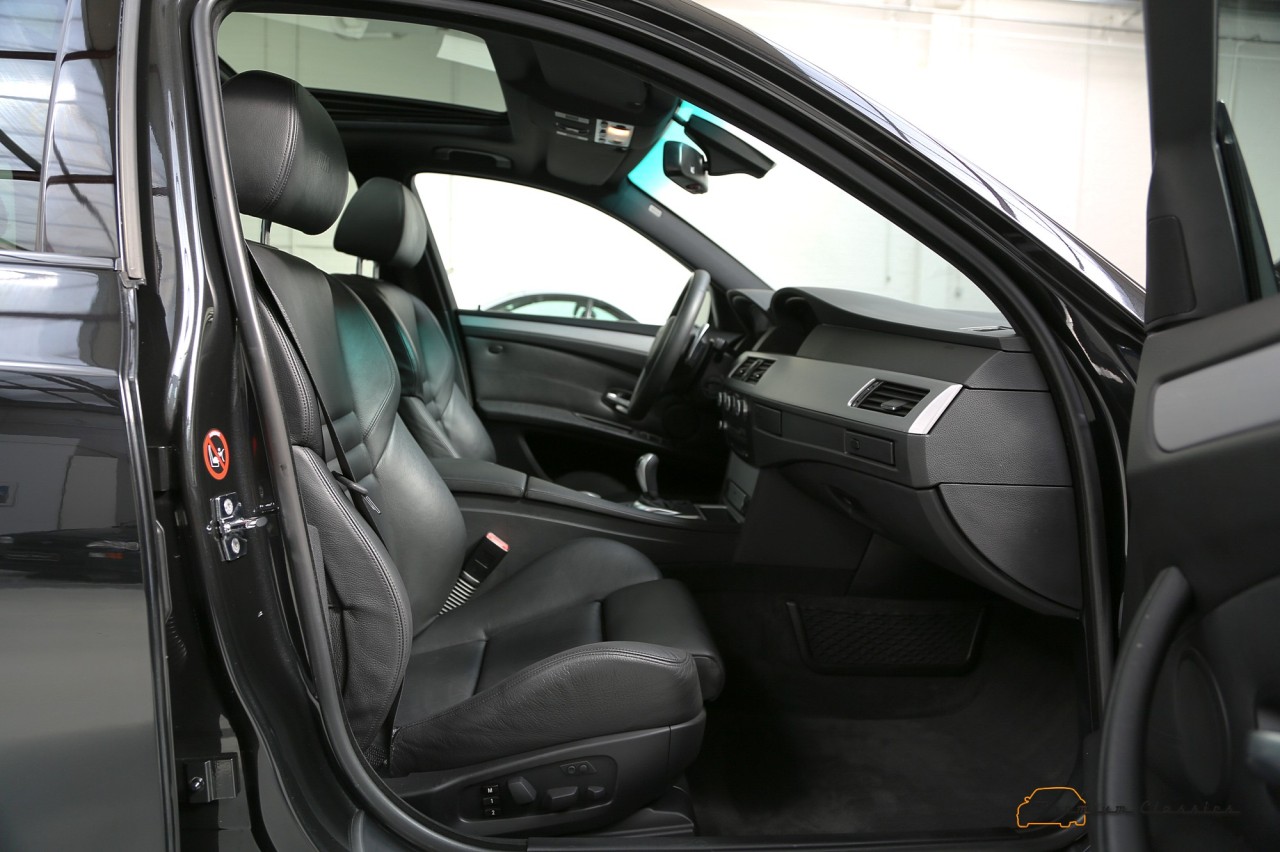 Este BMW M5 Touring E61 en particular se matriculó en 2007. Está terminada en color negro metalizado sobre un interior de cuero negro con molduras en efecto aluminio cepillado. Equipa algunos extras, como un volante de cuero M, faros adaptativos y un techo panorámico doble. En total, el M5 ha cubierto 73.588 kilómetros en los últimos 14 años y se encuentra en un estado de conservación ejemplar.