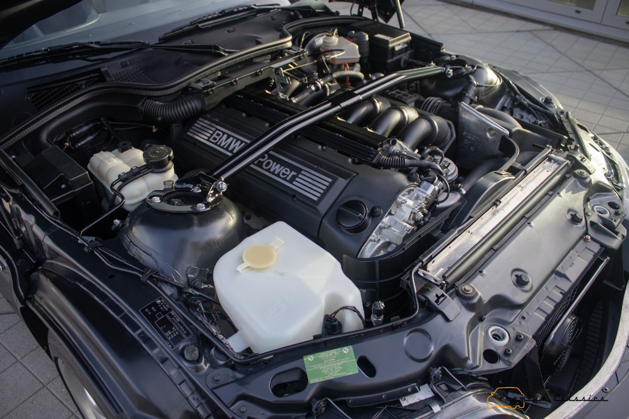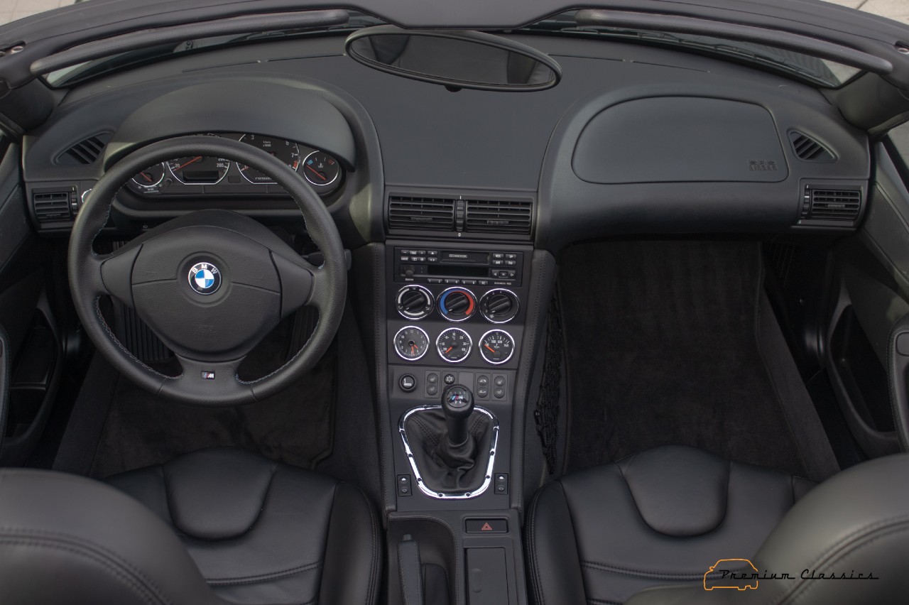 Bajo el capó, encontramos el apreciado motor de seis cilindros en línea de 3.2 litros, atmosférico, que entrega 321 CV, combinado con una caja de cambios manual de cinco relaciones. Gracias a esta configuración, a un peso muy contenido distribuido de manera equitativa 50/50 y a una posición de conducción muy baja, el Z3 M Roadster ofrece la experiencia de conducción de un auténtico roadster.