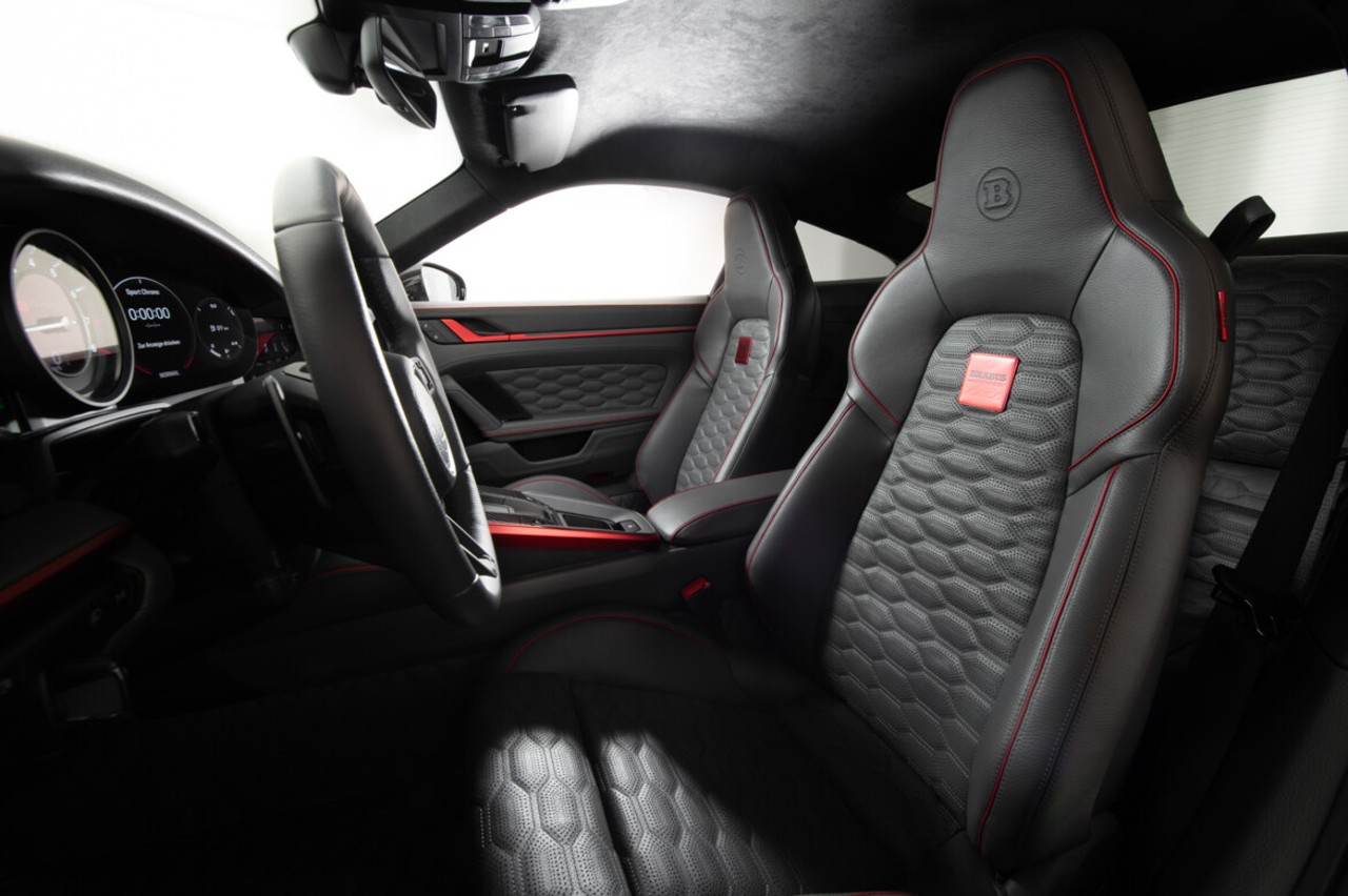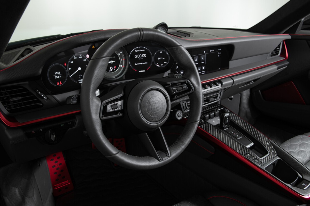 El interior se ha decorado con revestimientos específicos en color negro, destacando los asientos deportivos con un tramado hexagonal. Sobre el tren trasero, tenemos la unidad de seis cilindros bóxer del Turbo S, de 3.8 litros de cilindrada, optimizado con válvulas controladas electrónicamente y dos turbocompresores más grandes.