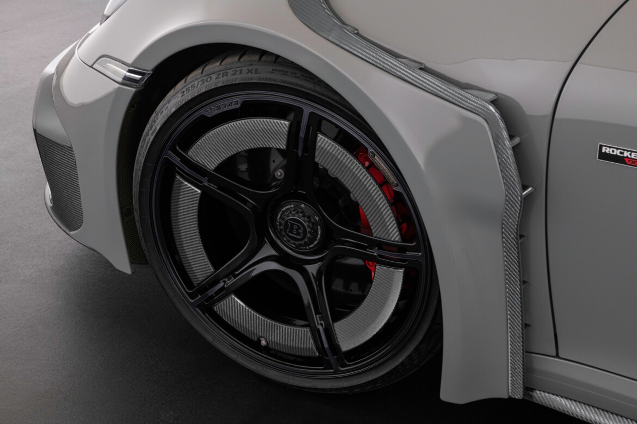 La producción del 900 Rocket R está limitada a sólo 25 unidades. Tomando como base un Porsche 911 Turbo S (prueba), Brabus ha realizado una serie de modificaciones, no sólo en el apartado mecánico, sino también en el estético. Así, tenemos un kit de carrocería muy agresivo denominado Widestar compuesto de elementos de fibra de carbono, como el splitter delantero, las nuevas salidas de aire en los pasos de rueda y un difusor en la zaga.