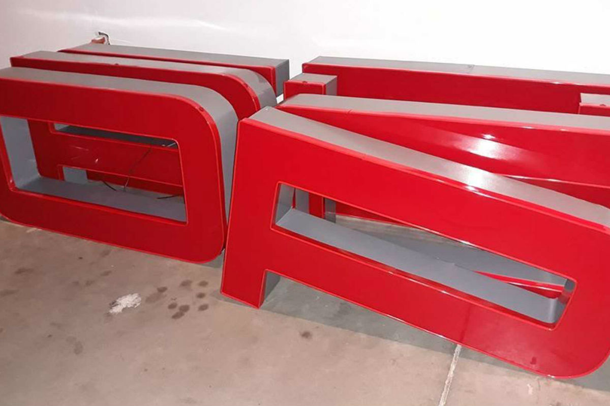 No solo eso, también eliminó todo lo relativo a la iluminación con fluorescentes que tenían las letras, sustituyéndola por una mucho más moderna y eficiente con tecnología LED. Aparentemente el coleccionista tiene letreros de muchas marcas y está especializado en ello.