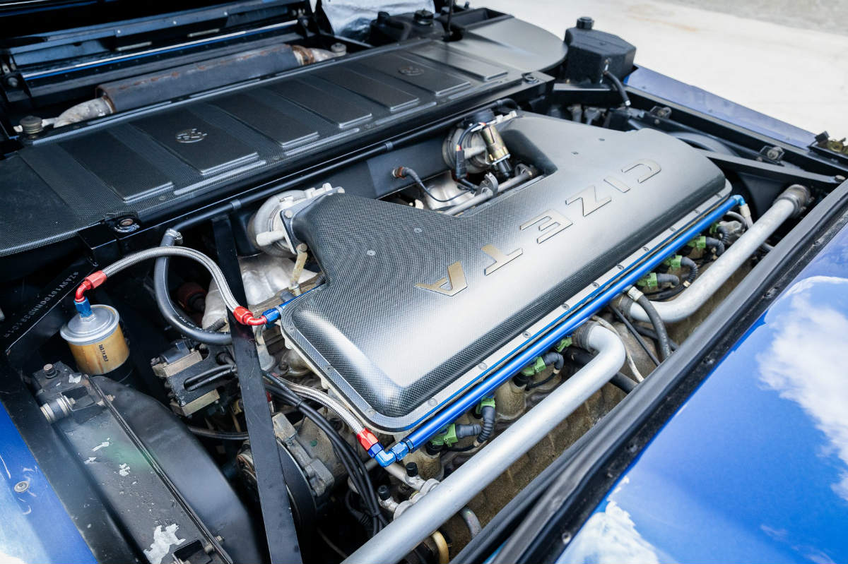 El V16T es uno de los modelos más exclusivos jamás fabricados, y es que solo llegaron a producirse 9 unidades, entre las que ésta en concreto tiene una de las historias más interesantes. Se trata del chasis #101, el sexto en salir de fábrica, que fue utilizado para las imágenes de prensa de Cizeta y, además, fue el que se presentó en el Salón del Ginebra de 1993.