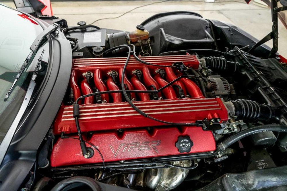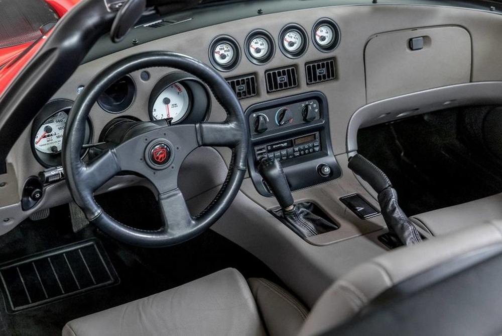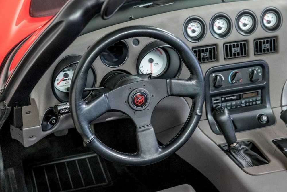Según el vendedor, un concesionario de coches de California (EE.UU.), este Dodge Viper RT-10 es además la unidad número 100 construida de la primera generación del Viper. Está en un estado totalmente original, pues incluso conserva los neumáticos con los que salió de la cadena de montaje. Claro que ya tienen 27 años, por lo que no nos fiaríamos de ellos más que para mover despacio el coche.