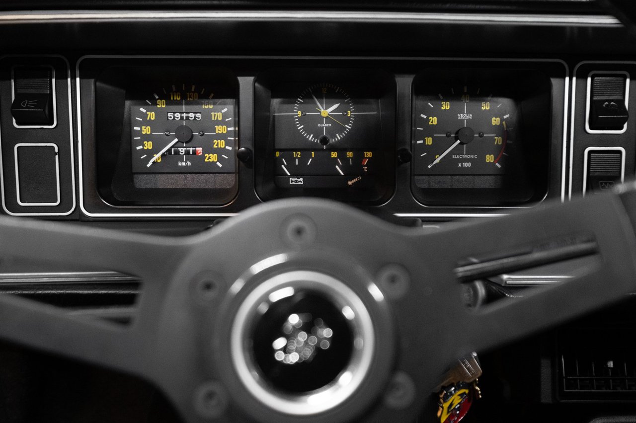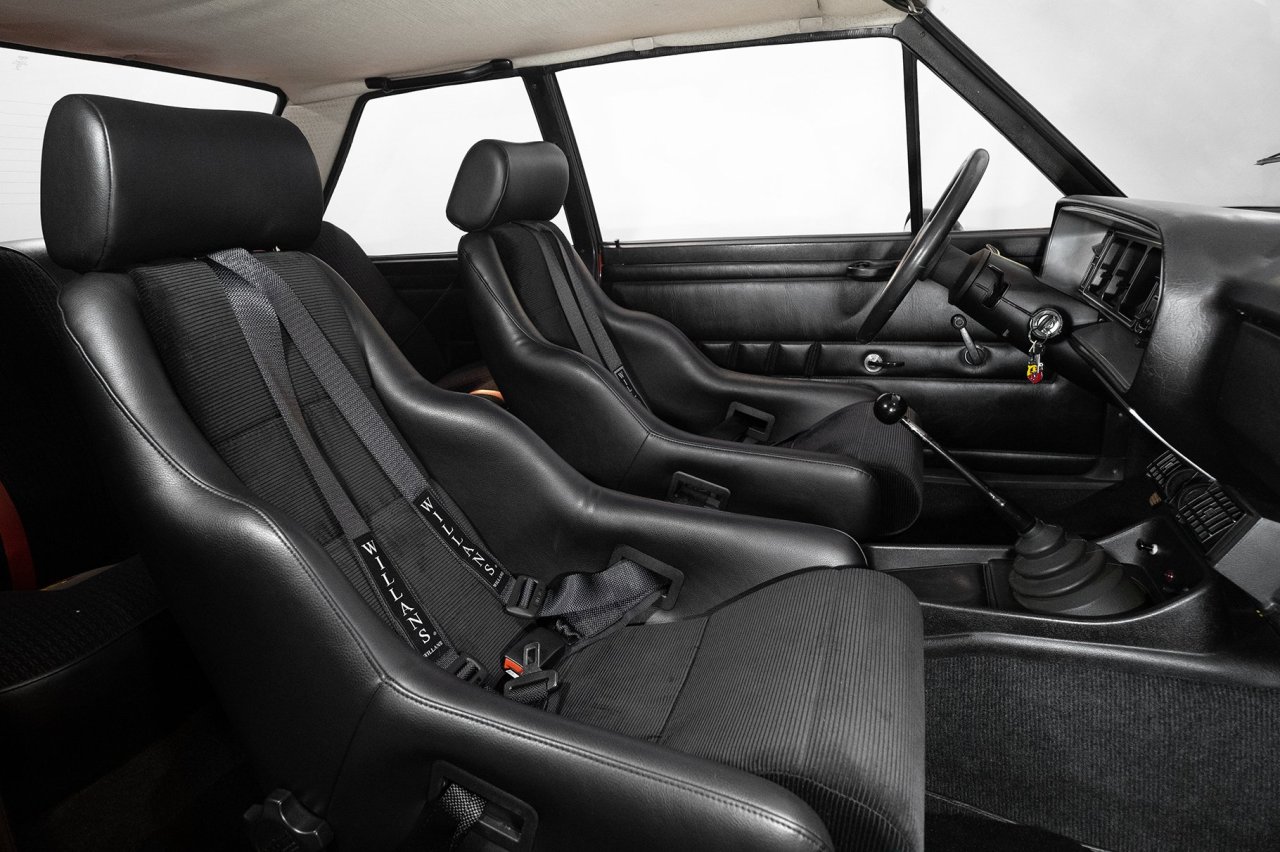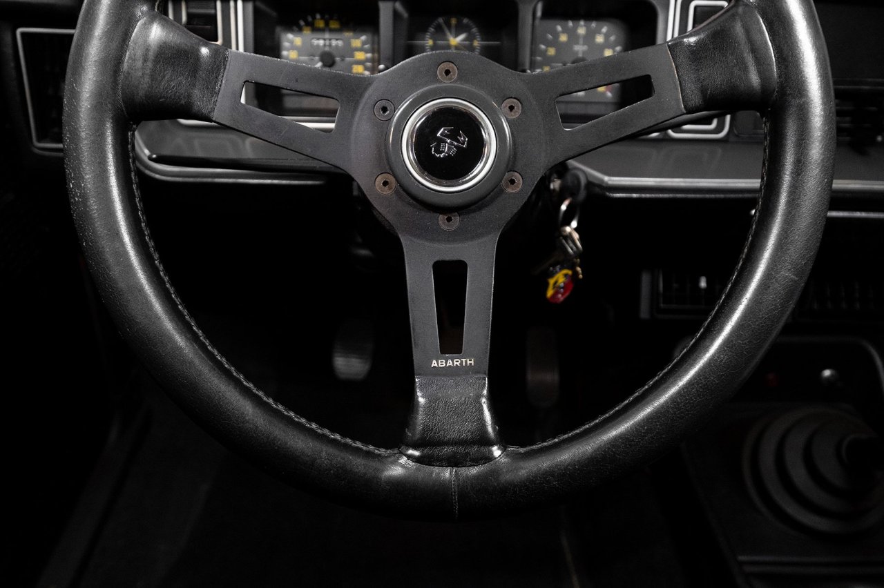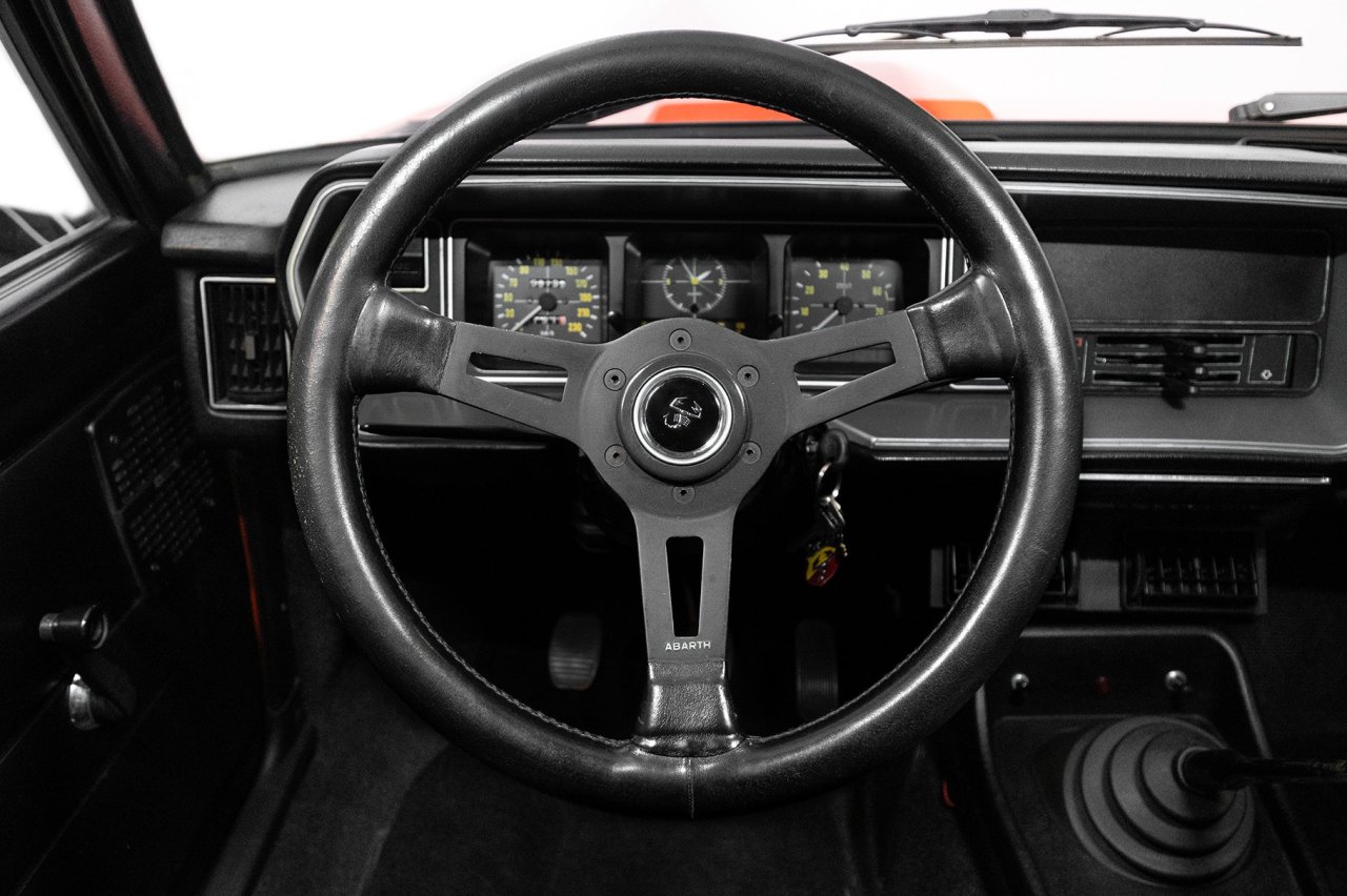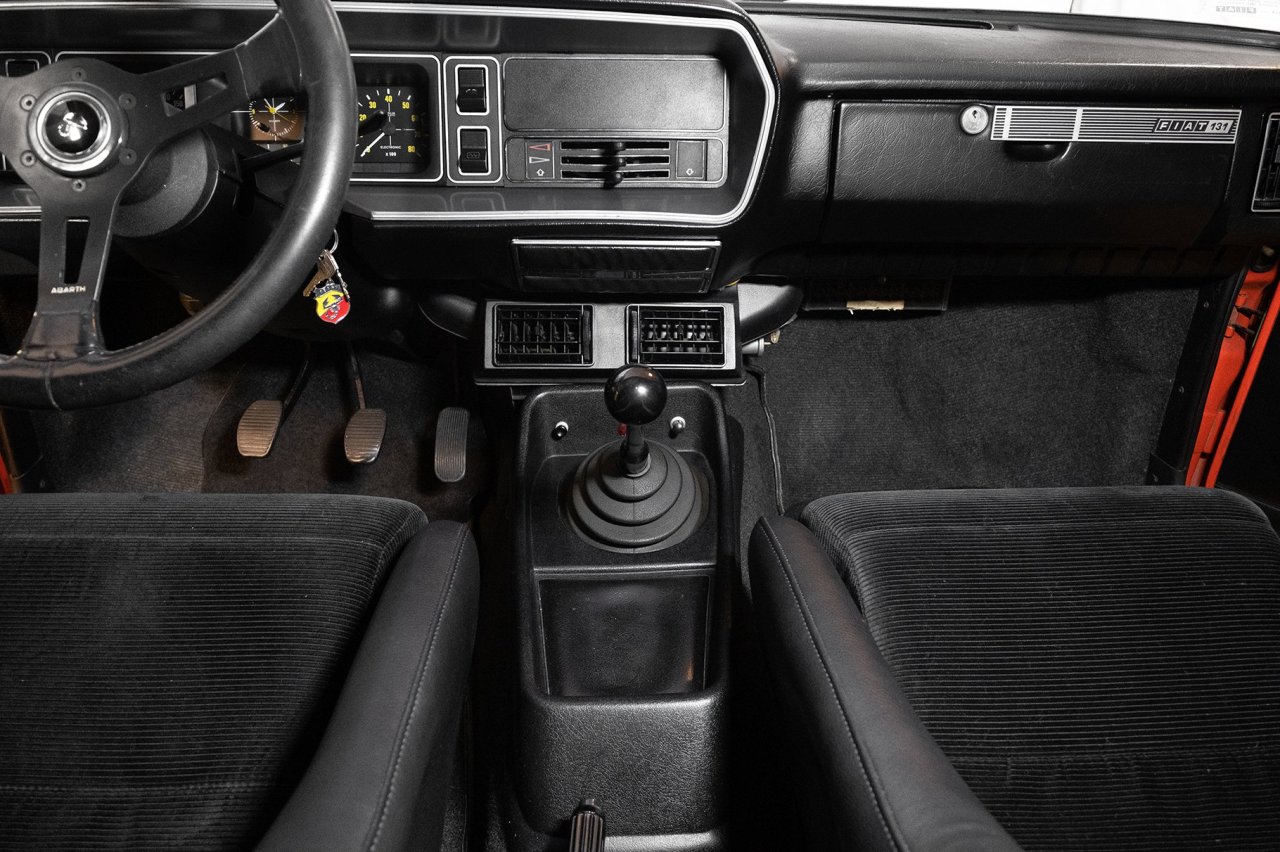 Este Fiat 131 Abarth Stradale en particular fue construido en 1976. Ha sido debidamente restaurado, con un exterior terminado en color naranja sobre llantas doradas de época. Dentro, unos asientos baquet de cuero negro y tela con arneses de cuatro puntos. También hay un volante Abarth de carreras y el odómetro indica que tan solo ha cubierto 59.199 kilómetros en los últimos 45 años.
