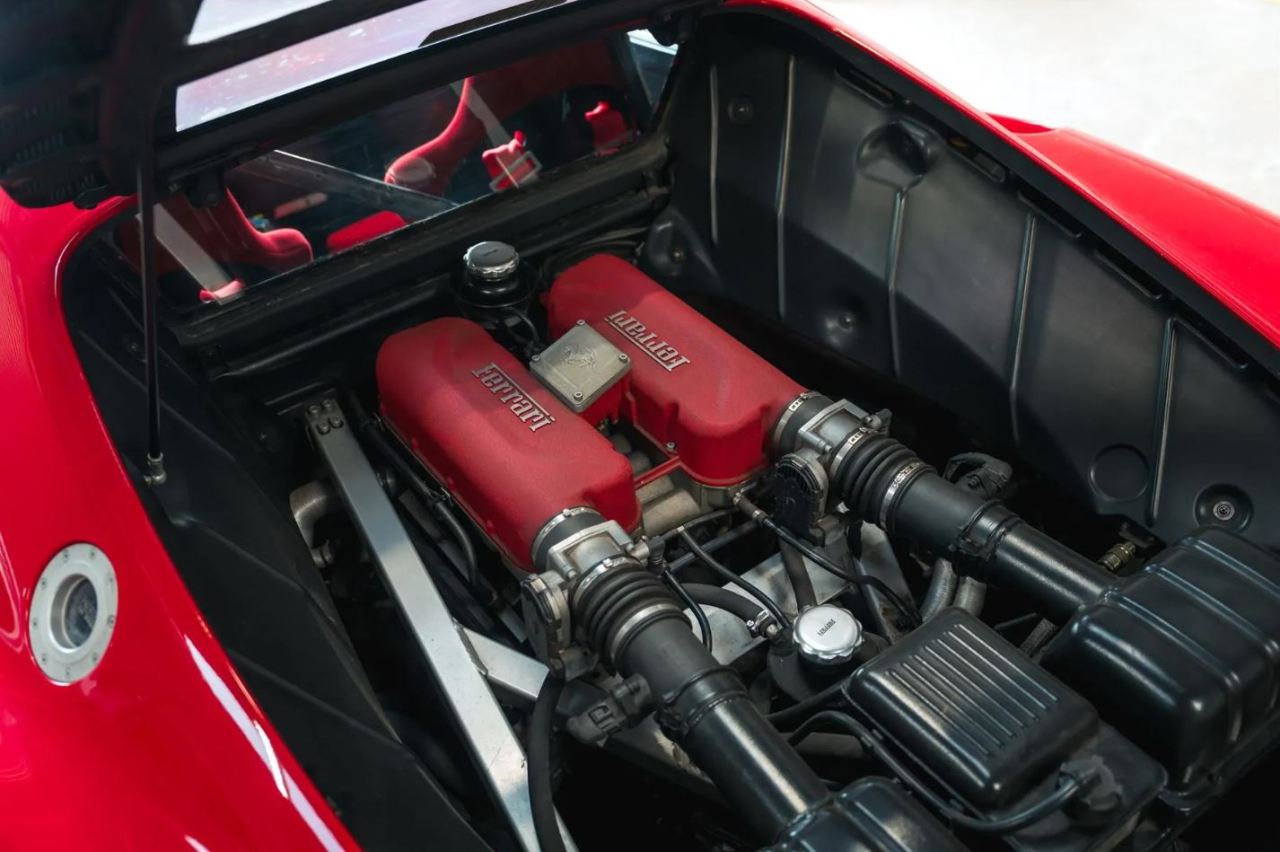 Equipado con un motor V8 de 3.6 litros atmosférico, este Ferrari 360 Challenge Modena ofrece una potencia de unos 400 CV gestionados por una caja de cambios automática. El interior ha sido desprovisto de elementos innecesarios para competir, como el sistema de sonido o el aire acondicionado, lo que ha permitido que el coche ahora pese unos 1.170 kilos, incluyendo líquidos.