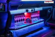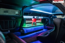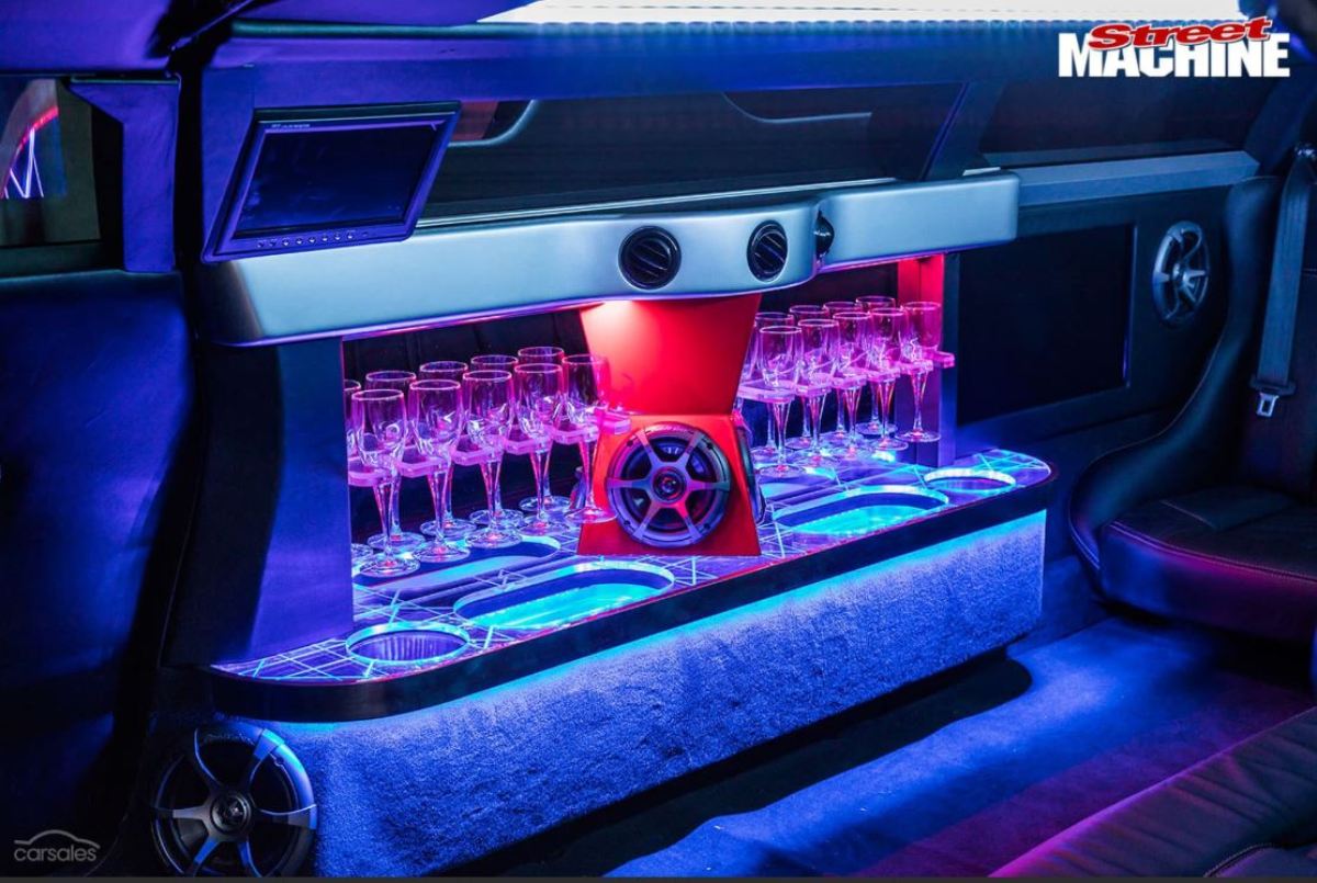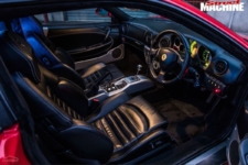 Mientras tanto, el techo extendido, los paneles laterales y las puertas traseras de estilo ala de gaviota, están fabricados en fibra de vidrio en un intento por mantener a raya el peso de esta limusina. Esta extensión significa que el Ferrari ahora cuenta con un habitáculo con espacio para hasta ocho pasajeros e incluye todo tipo de lujos y excentricidades, ya sean pantallas de televisión, sistema de sonido, luces de colores e incluso una pequeña barra de bar. El interior está terminado en cuero e incluye los logotipos de la firma italiana bordados en los cabezales.