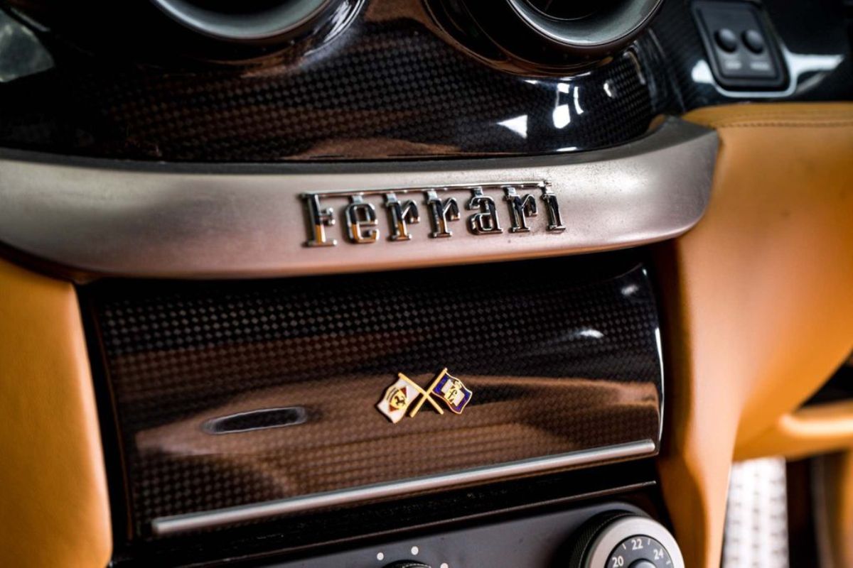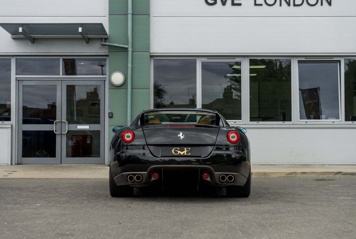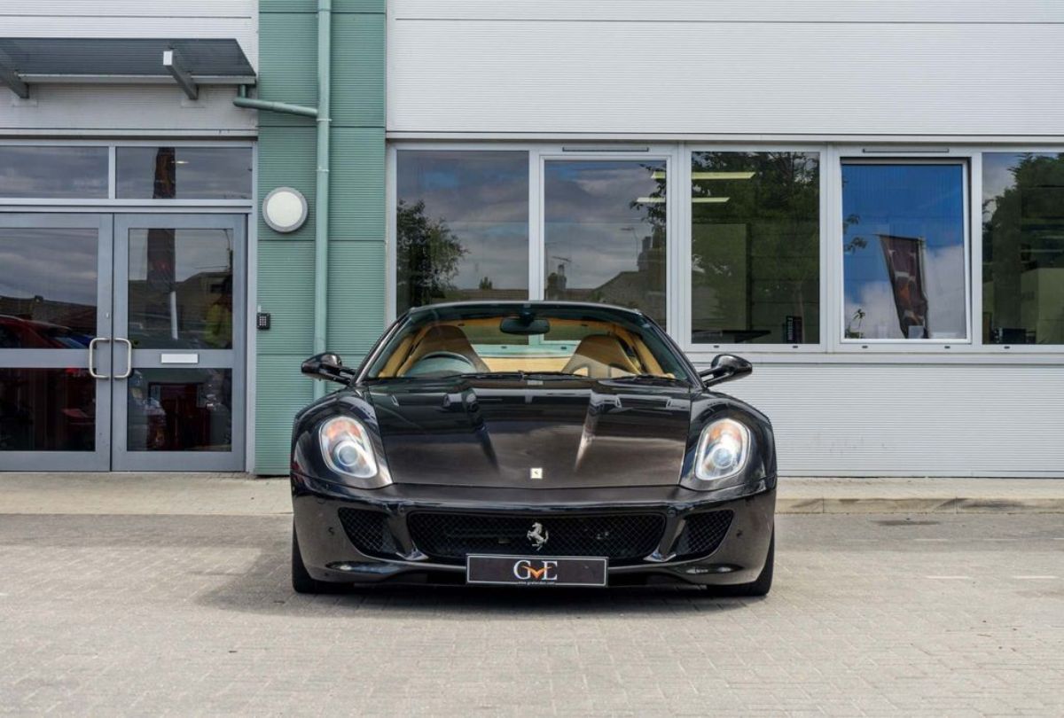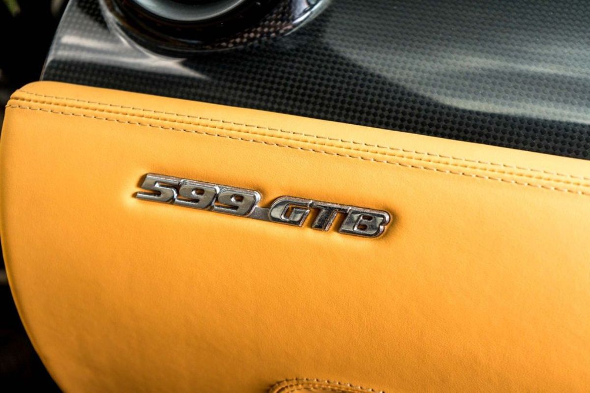 Terminado en Nero Daytona Black, este Ferrari 599 GTB Fiorano luce un interior Castoro Light Brown y equipa elementos destacables como los frenos carbocerámicos con pinzas de color amarillo, llantas de aleación de 20 pulgadas, sensores de aparcamiento, asientos eléctricos revestidos en cuero, molduras de fibra de carbono, techo de cuero, sistema de navegación, alarma antirrobo e intercambiador para seis CD.
