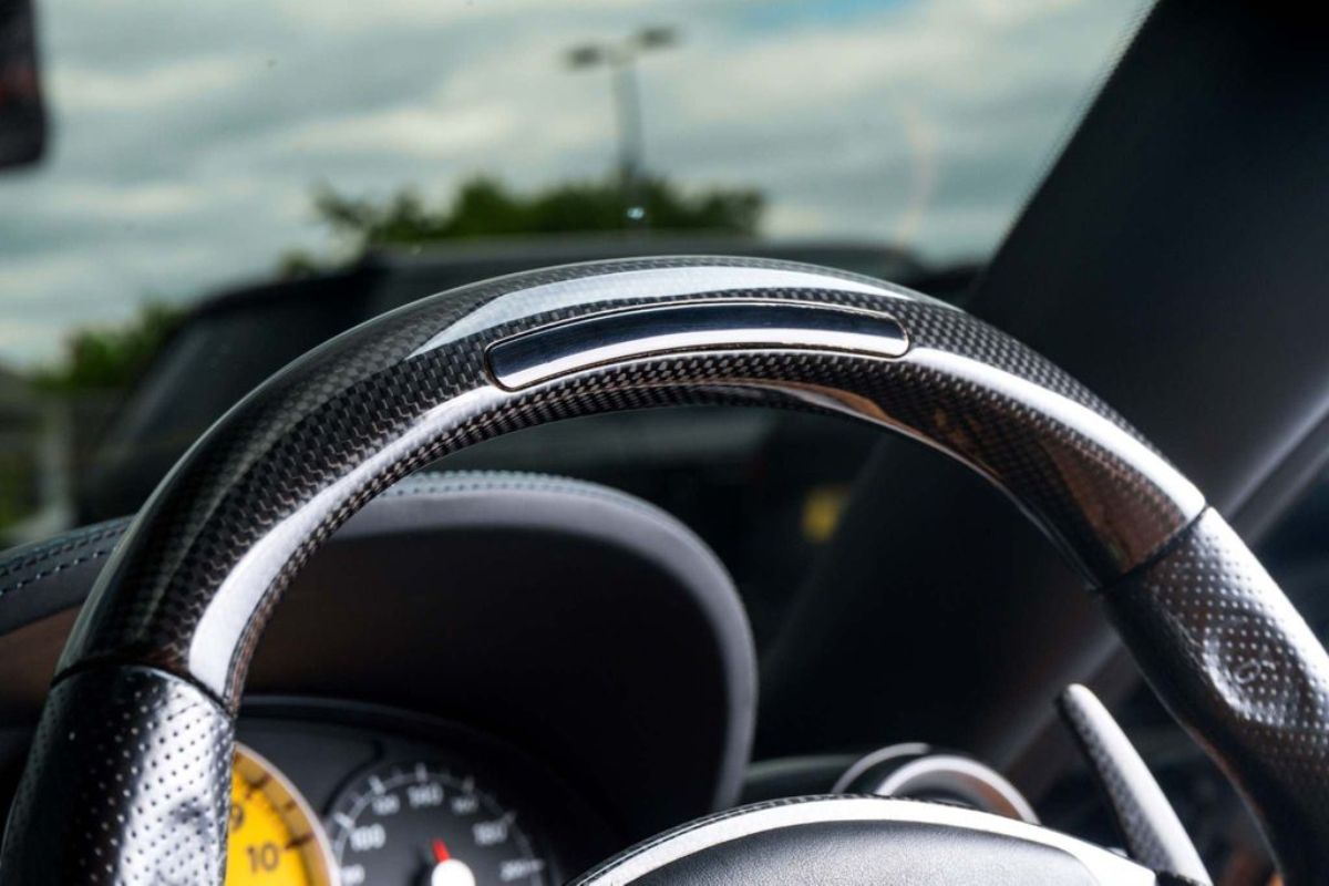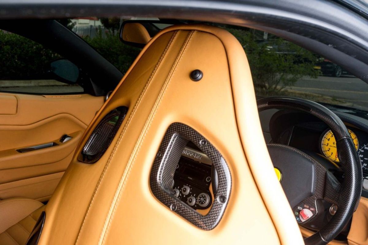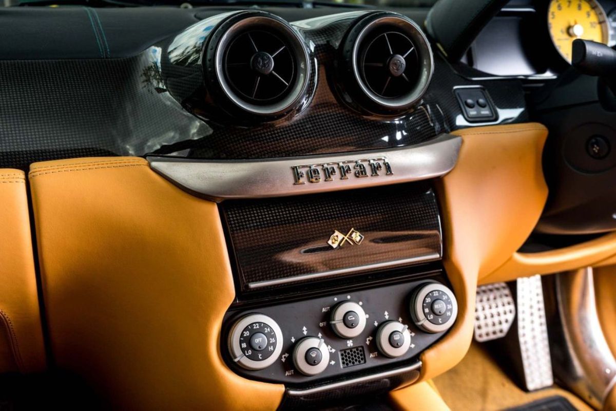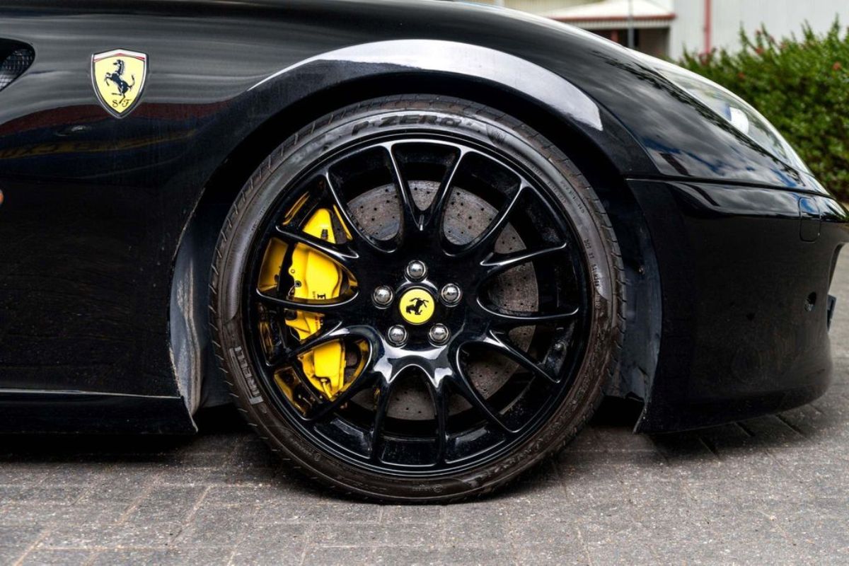 Terminado en Nero Daytona Black, este Ferrari 599 GTB Fiorano luce un interior Castoro Light Brown y equipa elementos destacables como los frenos carbocerámicos con pinzas de color amarillo, llantas de aleación de 20 pulgadas, sensores de aparcamiento, asientos eléctricos revestidos en cuero, molduras de fibra de carbono, techo de cuero, sistema de navegación, alarma antirrobo e intercambiador para seis CD.