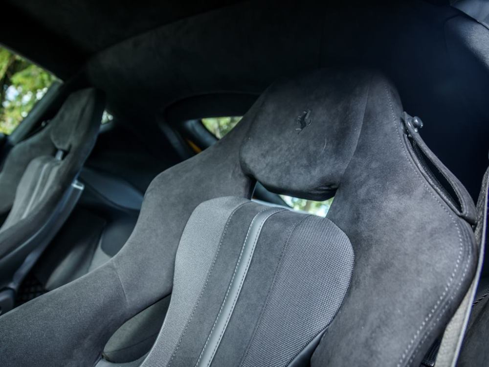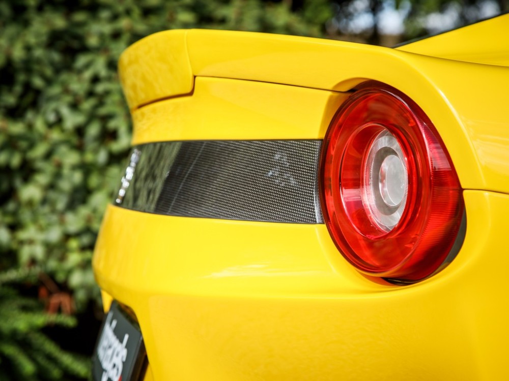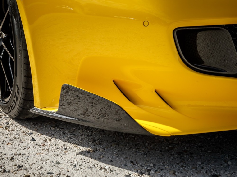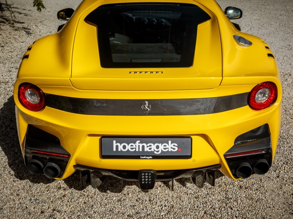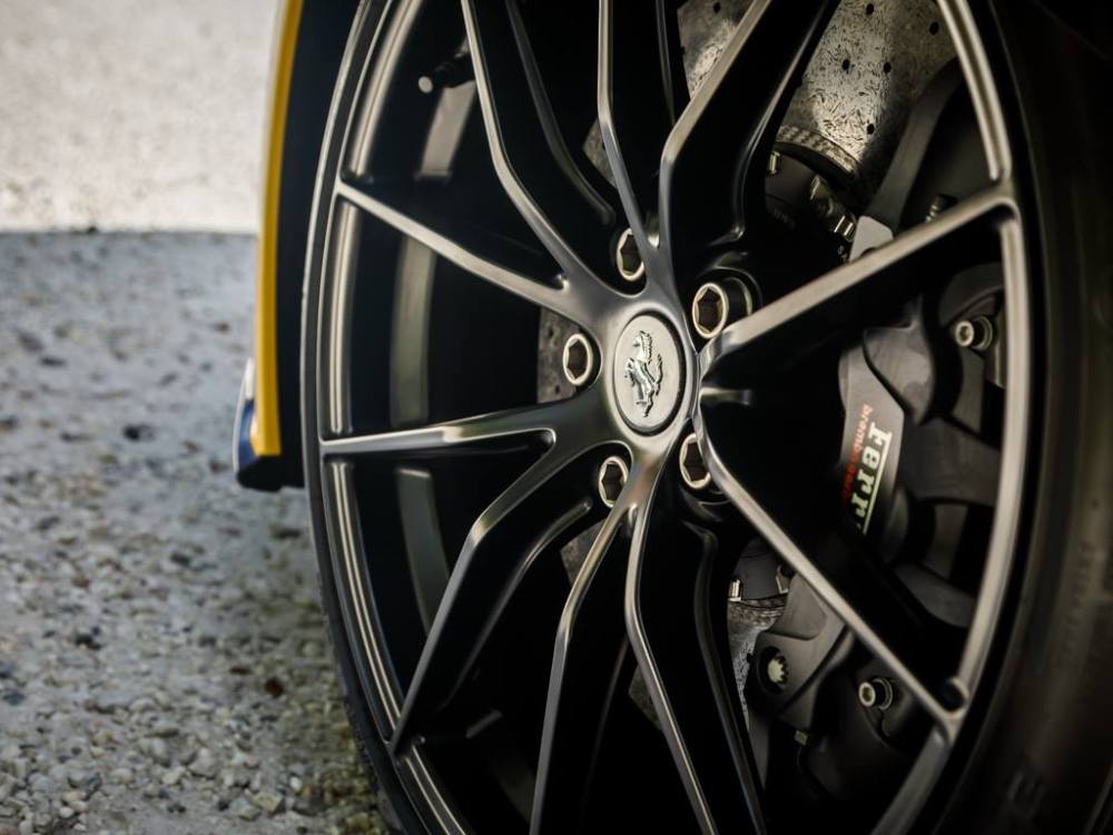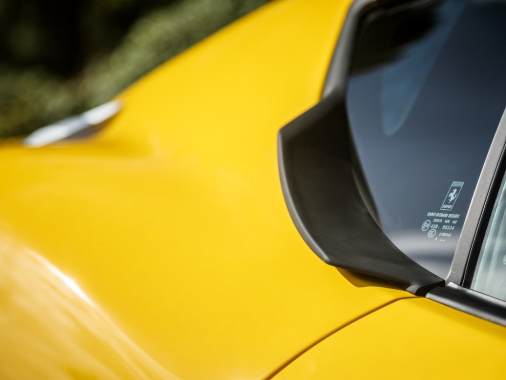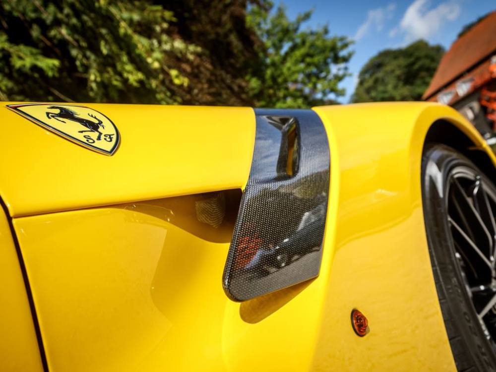 Este Ferrari F12tdf está terminado en el característico color amarillo de la compañía italiana e incorpora diferentes inserciones de fibra de carbono visible a lo largo de la carrocería, así como un set de llantas de aleación de 20 pulgadas terminadas en negro. El F12tdf incluye un sistema adaptativo de amortiguación, el paquete de fibra de carbono para el interior y un sistema de audio de alta definición.