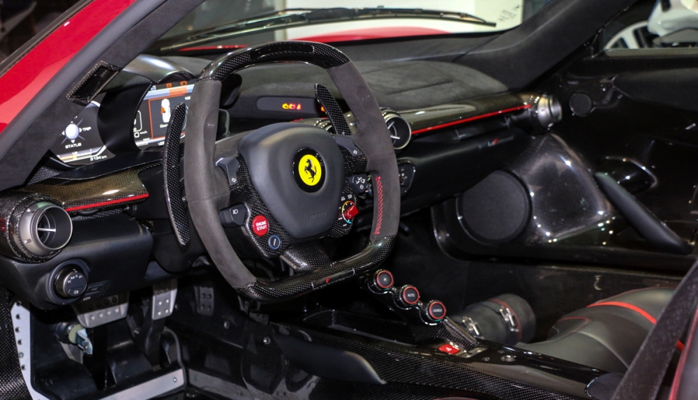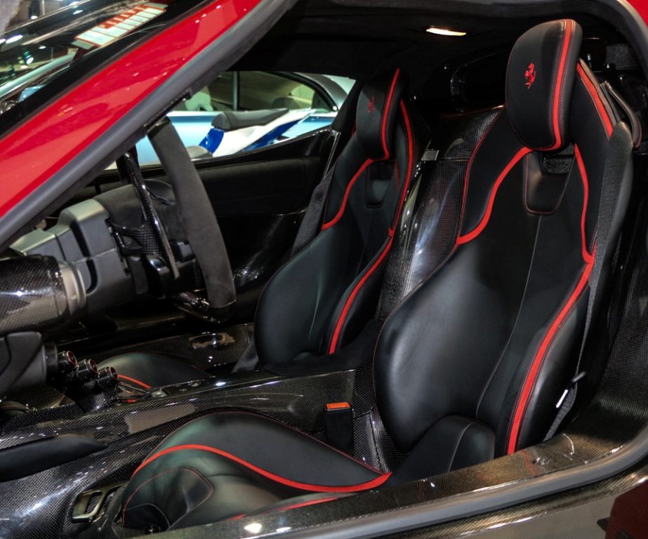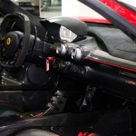 Además, incluye las llantas originales de cinco radios en color plata, pinzas de freno en rojo, retrovisores negros y fibra de carbono alrededor del frontal. Una vez en el habitáculo del Ferrari LaFerrari a la venta, podemos encontrar una mezcla de fibra de carbono, cuero negro con costuras en rojo y el túnel de transmisión terminado en el mismo color.