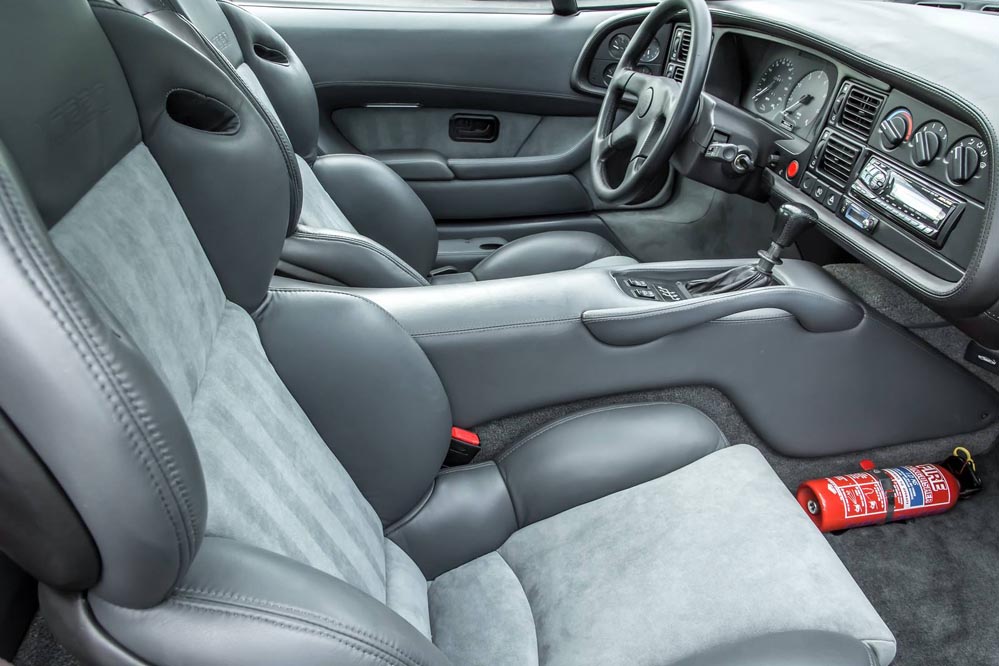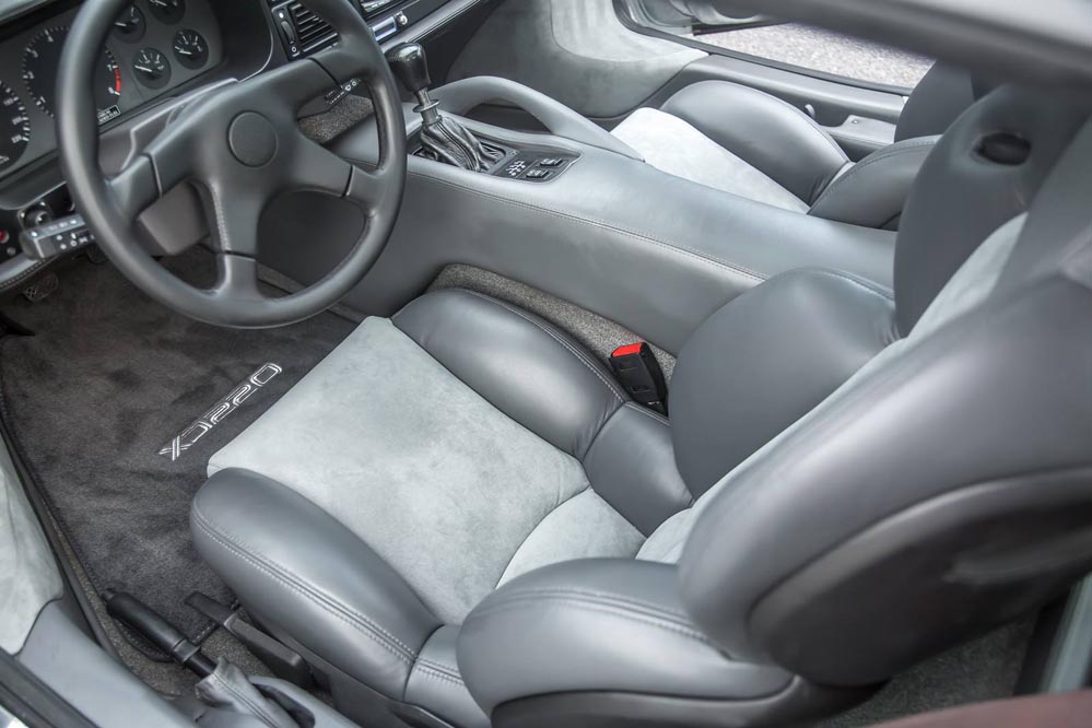 Este Jaguar XJ220 que se encuentra a la venta es uno de los solo dos ejemplares que se encuentran en Estados Unidos. Un exterior terminado en plata con llantas del mismo tono originales, mientras que la cabina presenta asientos de cuero negro, volante, palanca de cambios y alfombrillas XJ220 del mismo tono. El túnel de la transmisión y la zona central de los asientos están terminados en un elegante tono gris.