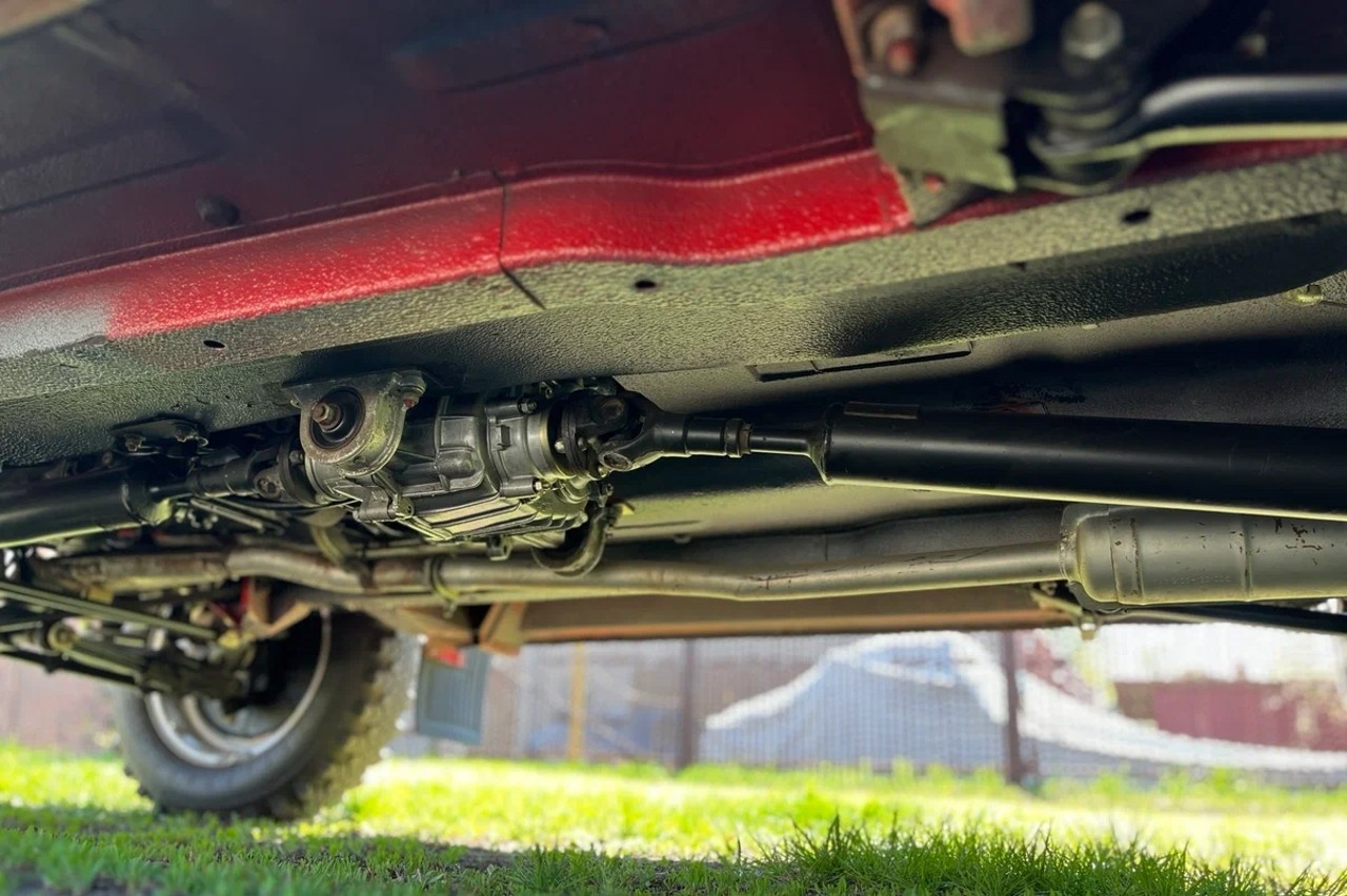 Sorprendentemente, a pesar de su antigüedad, el exterior se mantiene en excelentes condiciones, con la pintura roja original, los parachoques cromados y las llantas de acero aún relucientes. Los bajos, incluyendo la suspensión, el motor, el diferencial y el escape, parecen intactos y se asemejan a los de un clásico totalmente restaurado debido a su falta de uso. En el interior, conserva incluso las fundas de plástico en los asientos y el salpicadero.