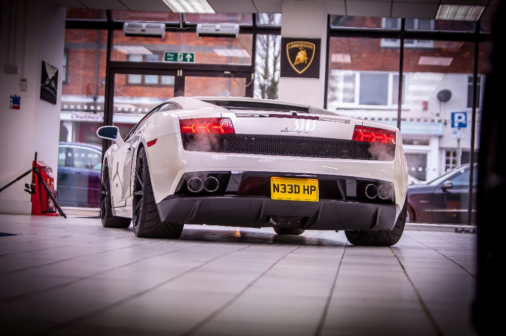 Este Gallardo con 2.200 CV está ubicado en Reino Unido y desde que fue estrenado en el año 2009, ha recorrido algo más de 32.000 kilómetros. Ofrece dicha potencia cuando emplea combustible de competición de alto octanaje, mientras que si llenas su depósito de carburante con gasolina convencional, esa cifra se queda en unos también impresionantes 1.100 CV. Eso sí, a pesar de todas las modificaciones efectuadas a nivel mecánico, difícilmente alguien se dará cuenta de lo que esconde debajo de su capó, pues a nivel estético no han introducido muchos cambios, que se limitan a un par de pegatinas de Underground Racing, a unas llantas ADV.1 y a unos neumáticos semi-slick.