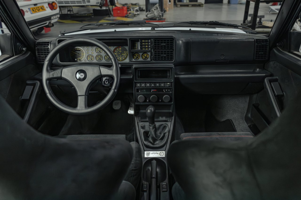 Se trata de un Lancia Delta Integrale Martini 5, uno de los solo 400 ejemplares que se produjeron en 1992. Basado en el Delta Evoluzione, la versión Martini 5 compartía el motor turbo de 2.0 litros y cuatro cilindros con 210 CV de potencia y 300 Nm de par. También había una suspensión con un tarado más firme y unos frenos con discos sobredimensionados y pinzas firmadas por Brembo.
