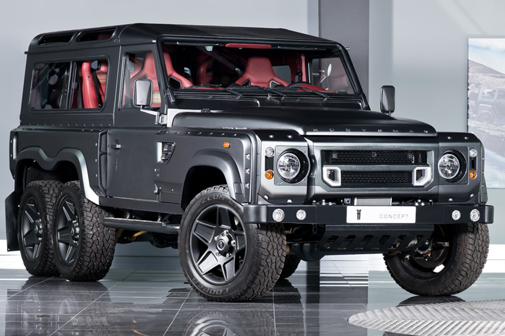 Se trata concretamente del Kahn Design Flying Huntsman 6×6, la espectacular preparación que creo Kahn Design, un preparador británico especializado en los productos de Land Rover, para la pasada edición del Salón de Ginebra 2015 (y que estuvo acompañado en el escenario por este llamativo Land Rover Defender Pick-Up). Esta construido a partir de la base de un Land Rover Defender 110 con carrocería Station Wagon, pero los cambios introducidos son de consideración.