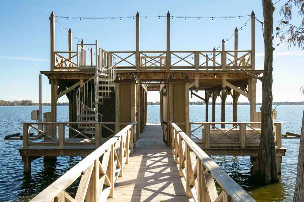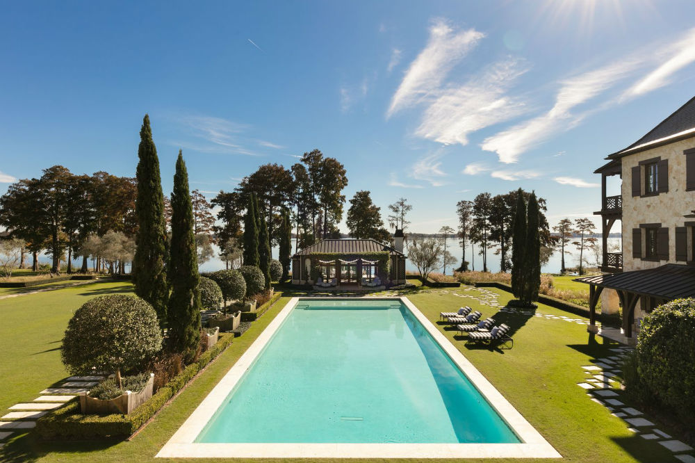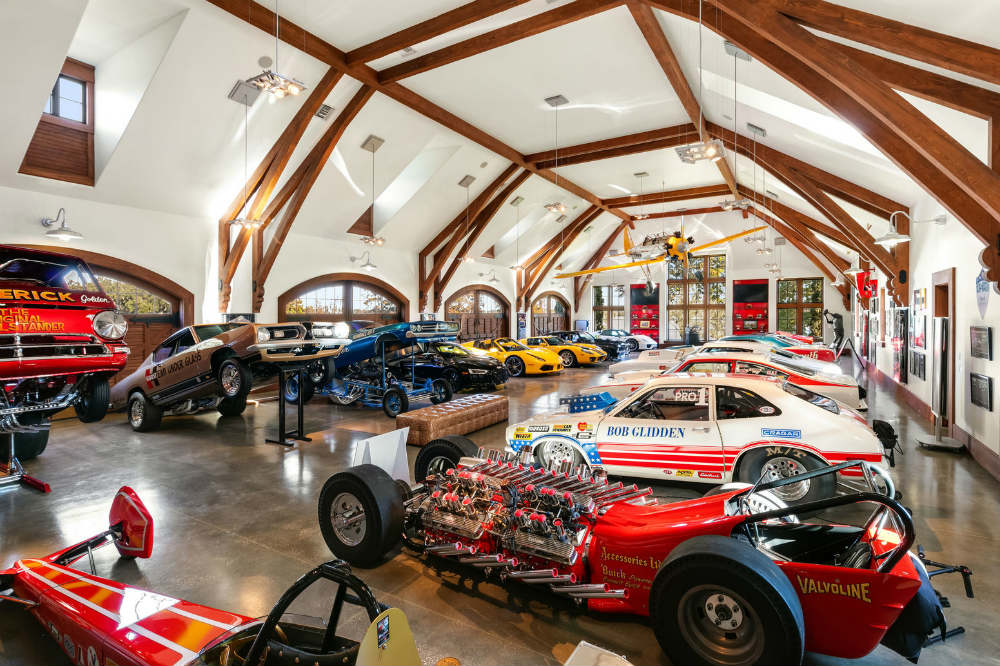 Aunque la mansión ya llame la atención por su contenido relacionado con el motor, también lo hace por el resto: tiene casi 4.000 metros cuadrados habitables, 8 habitaciones, 12 baños completos, 14 aseos, gimnasio, bolera, una sauna, piscina interior de agua salada, piscina exterior, embarcadero, etc.