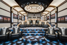 En las fotos y el vídeo que acompañan a esta propiedad podemos ver que el actual propietario tiene su propia colección, con un nutrido surtido de vehículos que incluye varios Corvette, Bugatti Veyron e incluso un Koenigsegg CCX, entre otros muchos coches de carreras y camiones. En cuanto a la casa, ésta fue construida en 2004 y cuenta con siete habitaciones, 12 baños completos, 4 aseos y diferentes tipos de estancias de recreo, como bares, sala de vinos, salón de belleza, una sala de cine y una piscina climatizada.