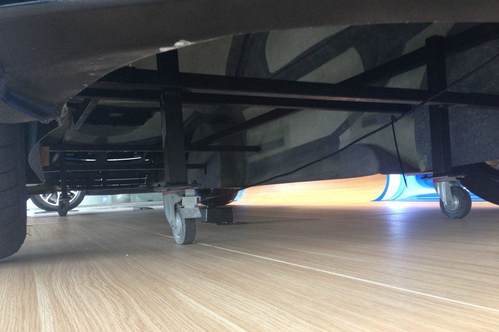 La carrocería de este BMW i8 está fabricada con fibra de vidrio y se asienta sobre una estructura con ruedas para poder desplazarlo. Las puertas no se pueden abrir, no tiene habitáculo ni ningún componente mecánico, pero las luces delanteras y traseras sí son funcionales. No sabemos quién estará interesado en adquirir esta maqueta, pero no nos sorprendería que una de esas empresas que hacen réplicas lo adquiriera para transformarlo en un coche utilizable.
