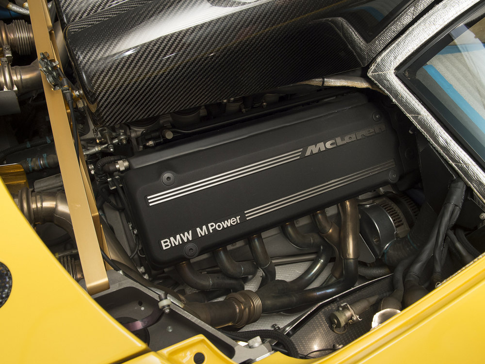 Escondido en posición central trasera, el McLaren F1 equipa un motor 6.1 V12 de origen BMW, una mecánica atmosférica que en su configuración original es capaz de generar 627 CV de potencia a 7.400 rpm y 651 Nm de par a 5.600 rpm. Este rendimiento fue suficiente para que otra unidad se alzara como el título del vehículo de producción con motor atmosférico más rápido del mundo (que aún hoy conserva) tras lograr alcanzar una punta de nada menos que 391 km/h.