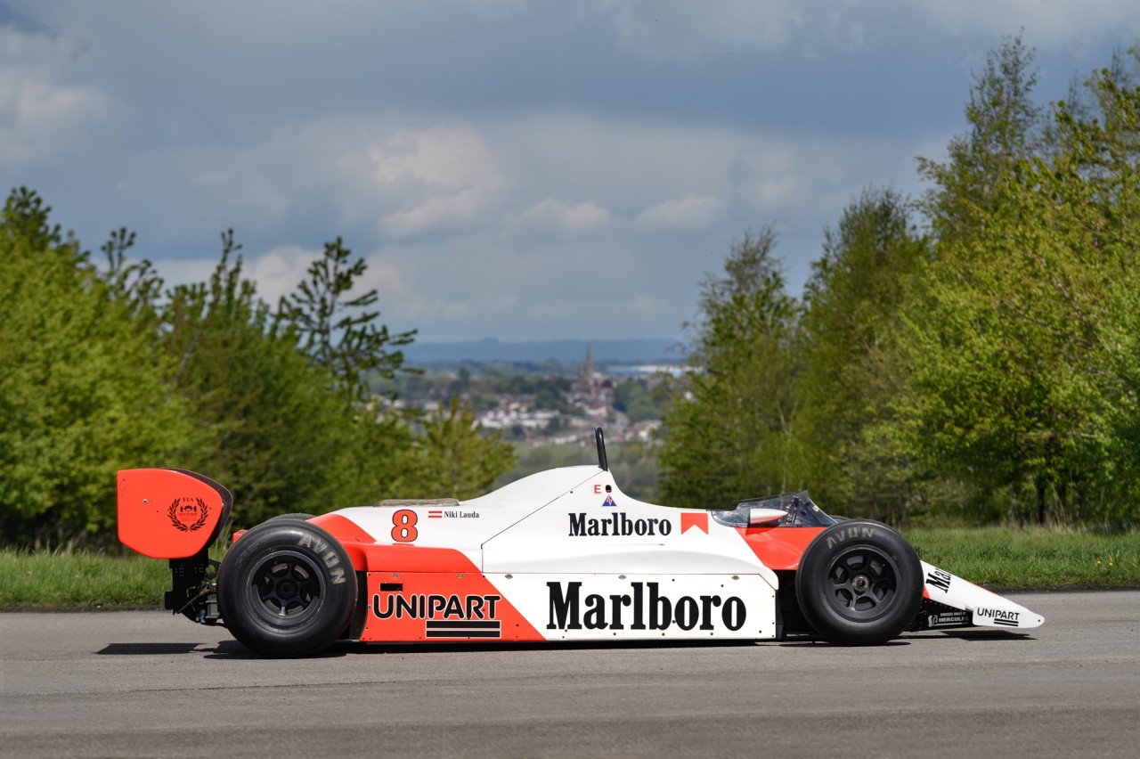 Se trata del primer monoplaza que Lauda pilotó en McLaren en su año debut con el equipo británico en 1982. El vehículo fue concebido por John Barnard, un talentoso ingeniero de Project Four que quería un chasis estrecho para maximizar el efecto suelo. Para reemplazar la rigidez perdida en el chasis y la carrocería, Barnard recurrió a la fibra de carbono. Trabajar con este material era “más como confeccionar que construir un automóvil”, aseguraba en su día el ingeniero.
