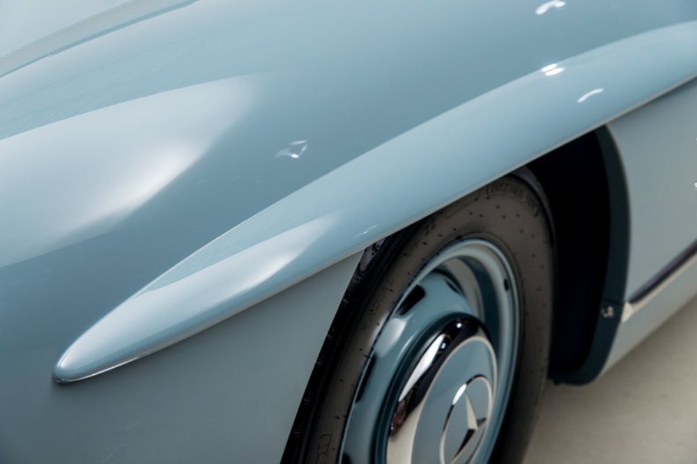 Según la documentación oficial de Mercedes-Benz, esta unidad se fabricó en Stuttgart el 9 de febrero de 1960 y fue terminado en un color denominado Blue Grey con un interior de cuero natural. Tanto las llantas como el techo duro opcional están terminado en el mismo color exterior. Dado que iba a ser expuesto en el Salón de Copenhague de ese año, este Mercedes-Benz 300 SL Roadster recibió algunas mejoras adicionales que le permitieran destacar, como los diferentes elementos cromados o los componentes pulidos en el compartimento del motor.