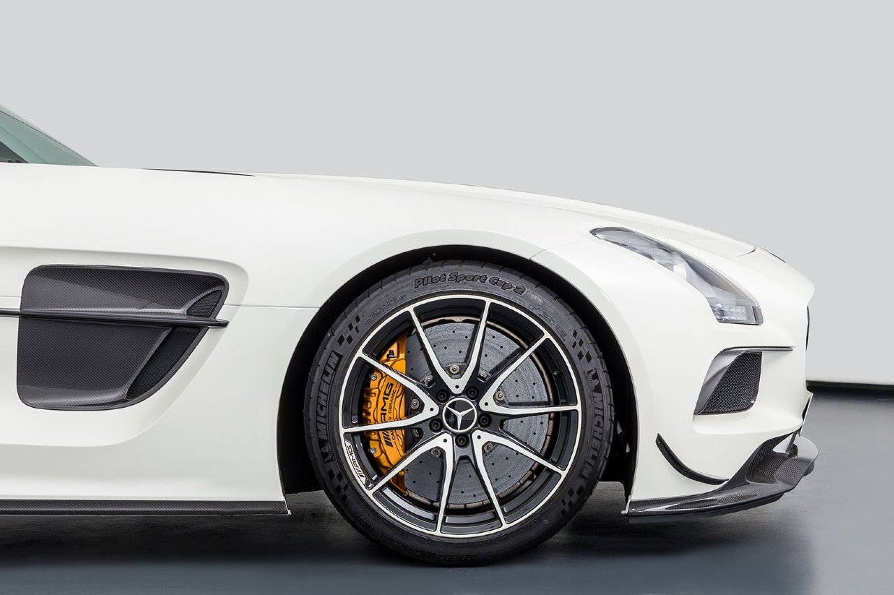 También cabe recordar que el Black Series dispone, respecto al SLS estándar, de numerosas piezas hechas con polímeros reforzados con fibra de carbono (CFRP), lo que le permitía rebajar el peso del conjunto en 70 kilos.