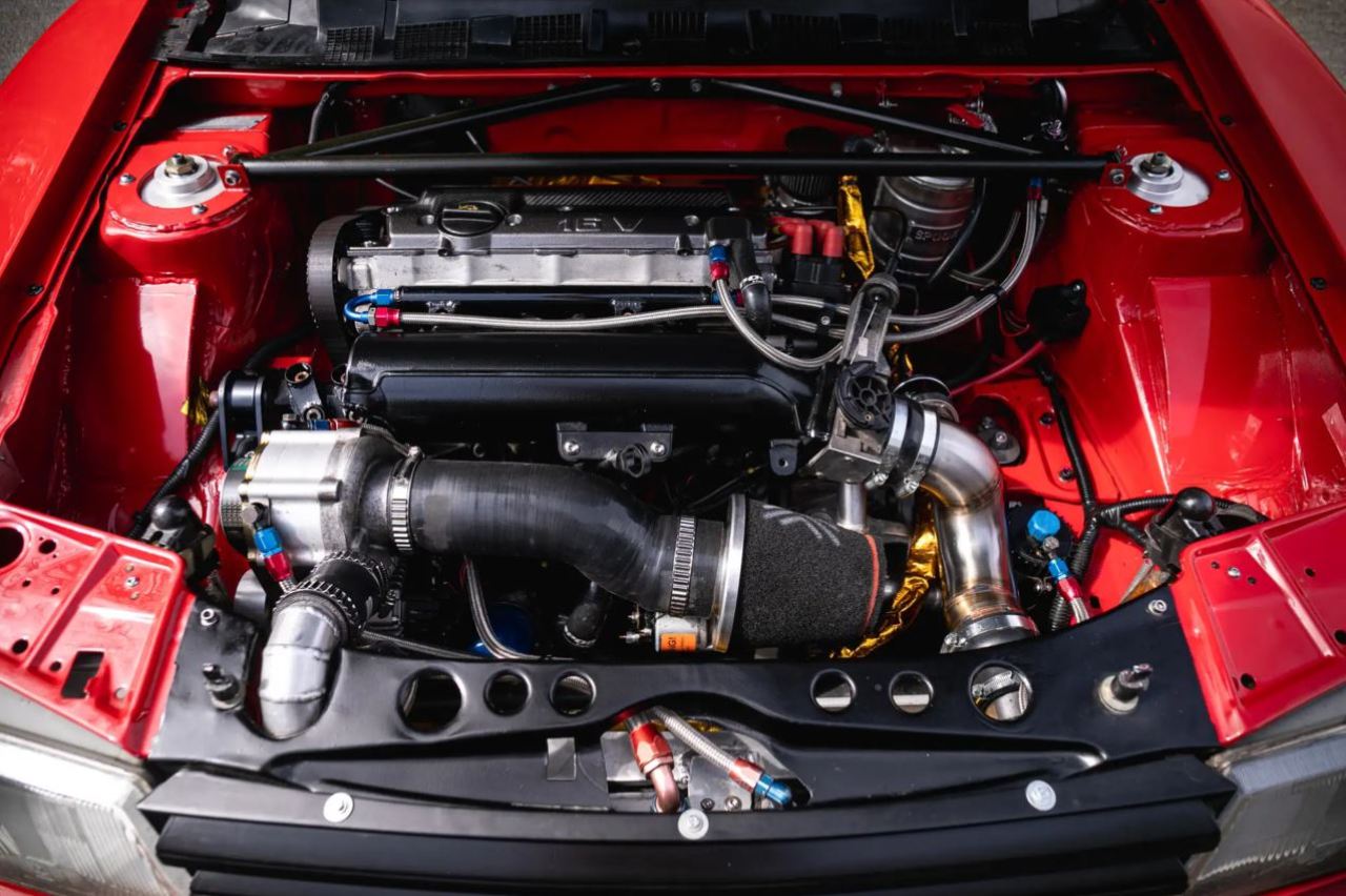 El motor de cuatro cilindros y 1.9 litros que se encuentra bajo el capó ha recibido todo tipo de modificaciones. Ahora está forjado, tiene poleas ajustables de aluminio, un colector de admisión personalizado y un supercargador Rotrex. También cuenta con un radiador y un intercooler de aluminio, lo que es suficiente para producir unos impresionantes 370 CV de potencia con combustible de carreras.