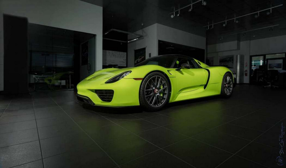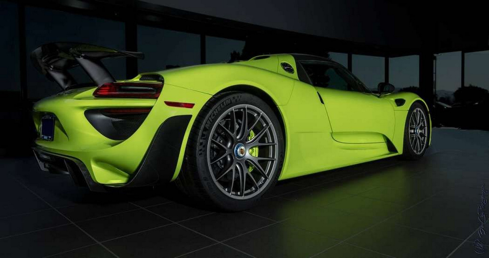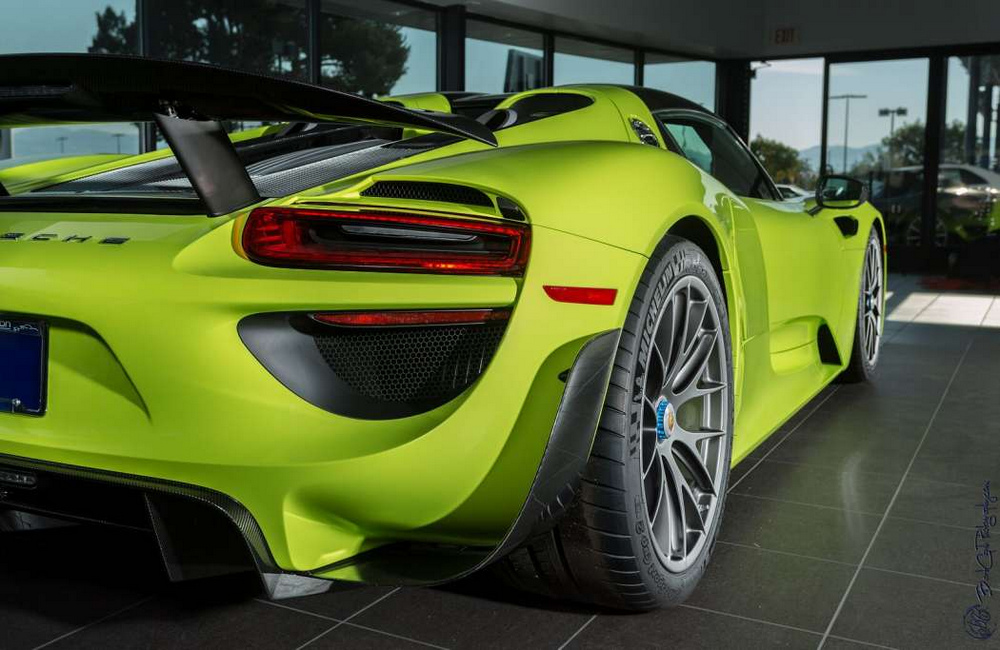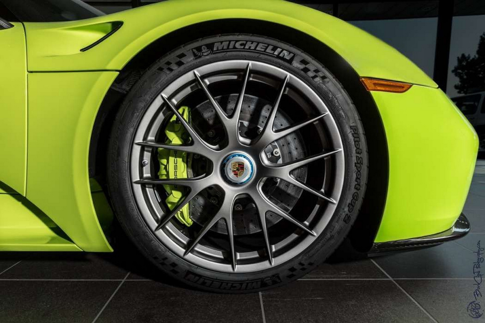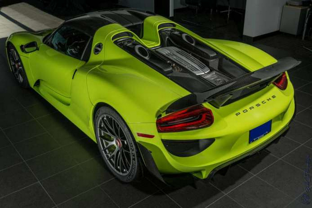 Lo más evidente es el color Verde ‘Acido’ de la carrocería de este 918 Spyder, una tonalidad que según el anunciante, sólo luce otra unidad de las 918 fabricadas. Además, es el único que hay en Estados Unidos pintado de este color, un mercado al que han llegado oficialmente un total de 297 ejemplares del exclusivo superdeportivo alemán. Y por si todo esto fuera poco, el propietario acertadamente seleccionó el paquete opcional Weissach, lo que hace que sea un poquito más especial.