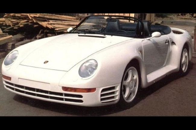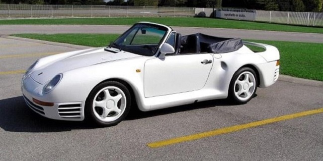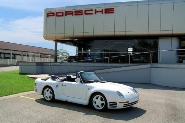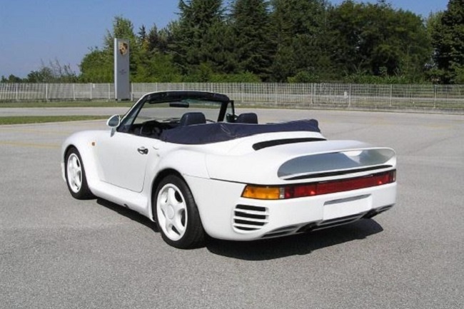 Al parecer, el propietario alemán del superdeportivo tuvo un accidente y su 959 blanco volcó. Como el techo había quedado dañado, decidió convertirlo en un descapotable y optó por montar un parabrisas similar al de los famosos 911 Speedster, aunque actualmente tiene montado el de serie.