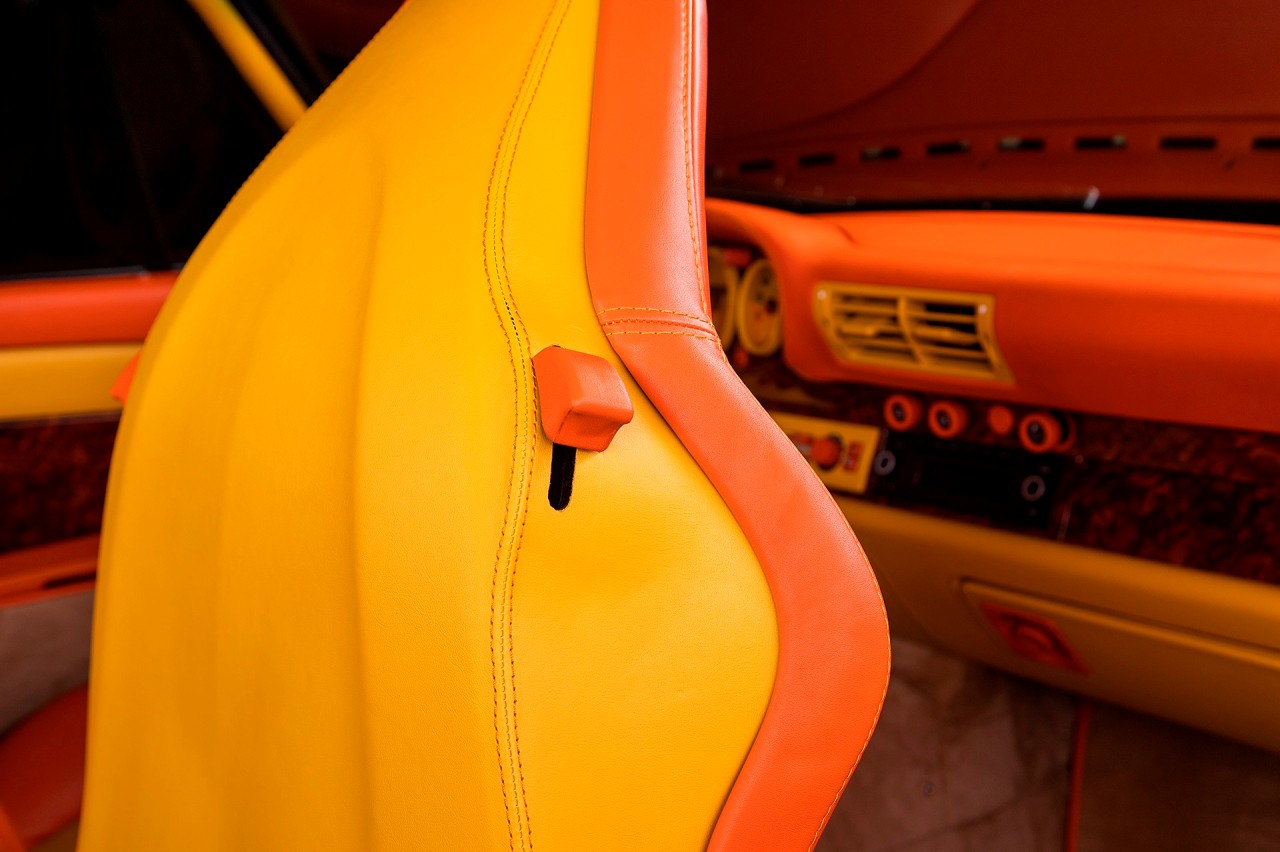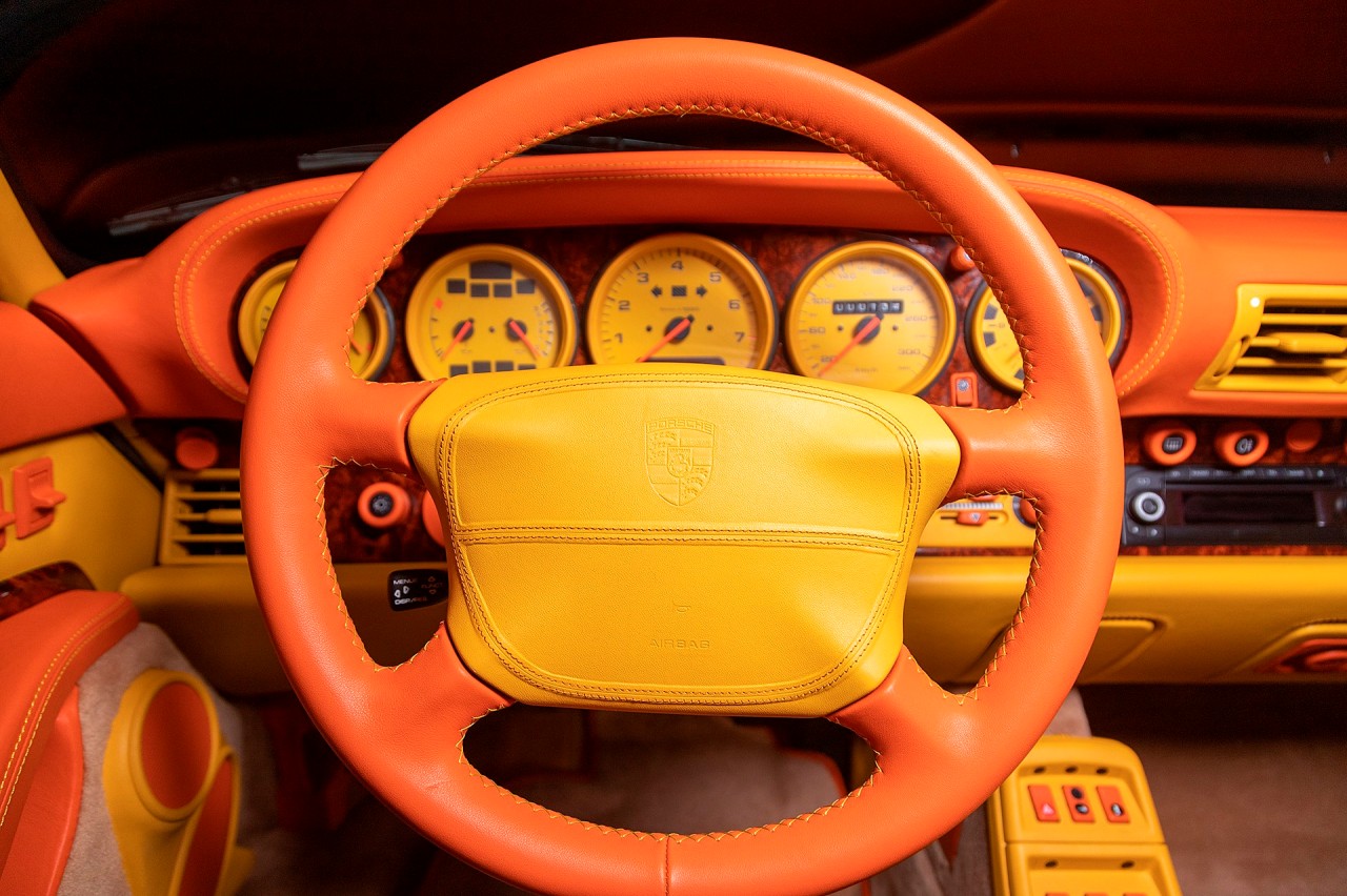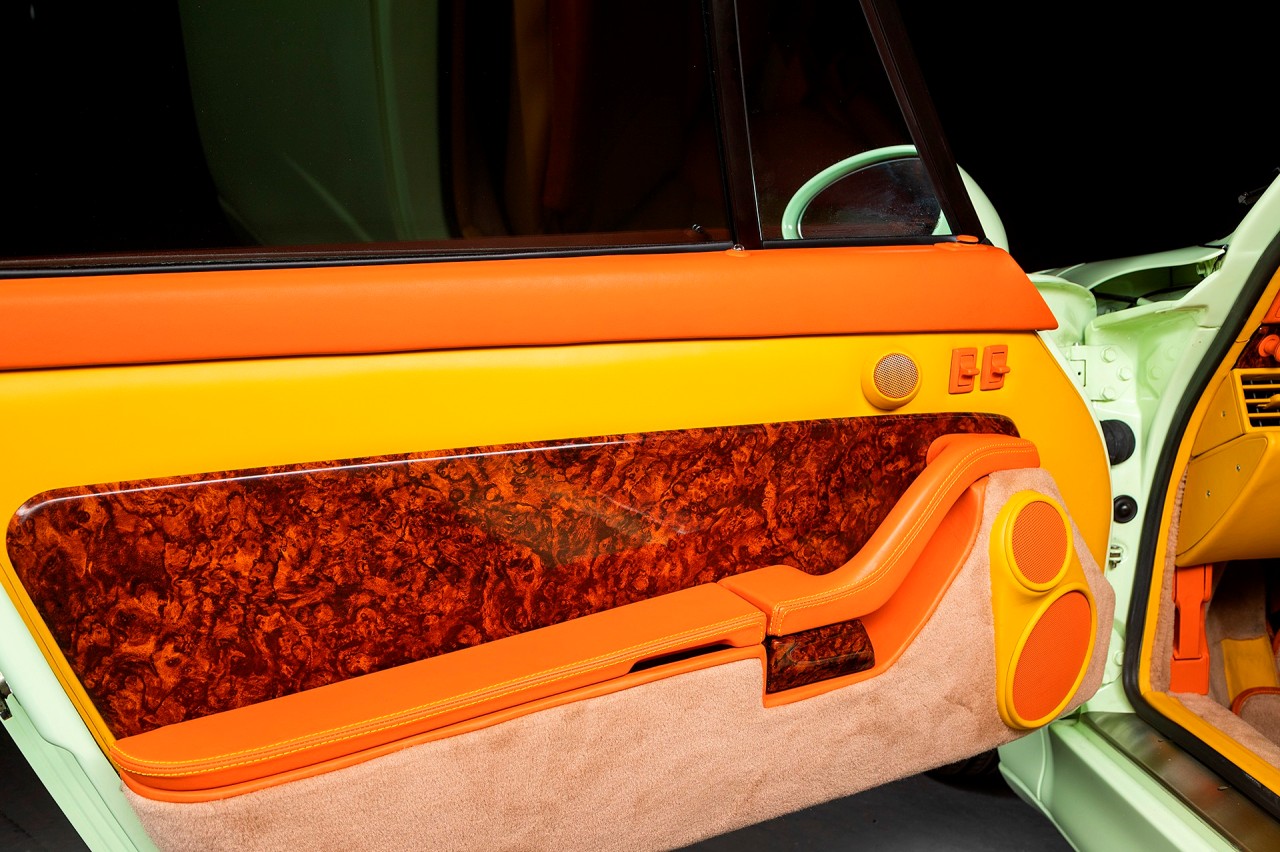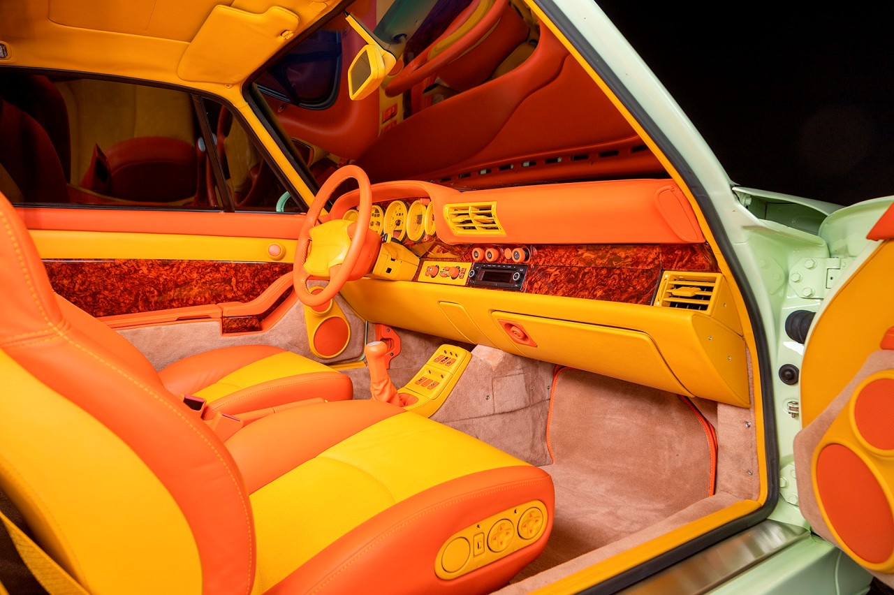 El jeque Nasser Al-Mohammad Al-Sabah, el sexto primer ministro del estado de Kuwait adquirió este Porsche 911 Turbo S (prueba) de la serie 993 en el año 1998. Está terminado en un llamativo Vanilla Yellow con toques verdosos. Luce las llantas Porsche Turbo originales y pinzas de freno en amarillo. A pesar de lo curioso de la pintura exterior, Al-Sabah decidió que el interior también debía estar a la altura.