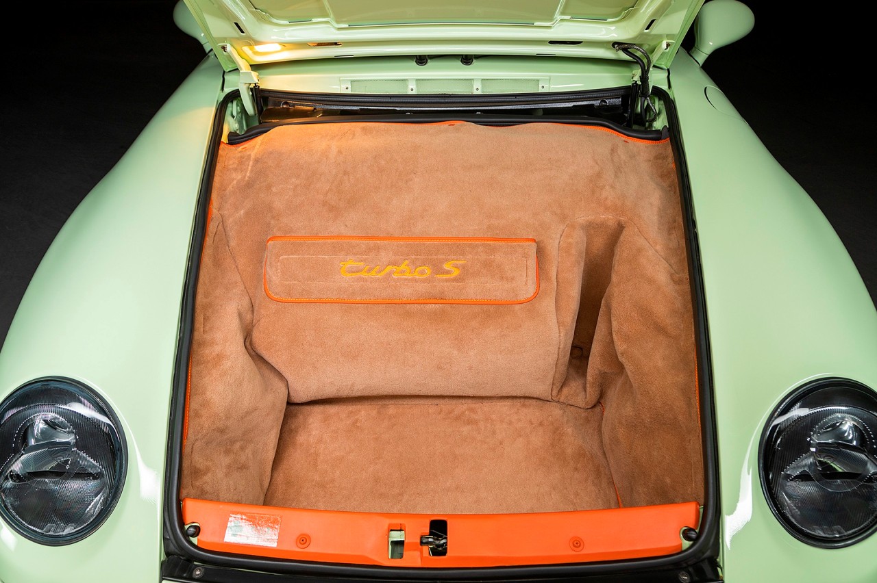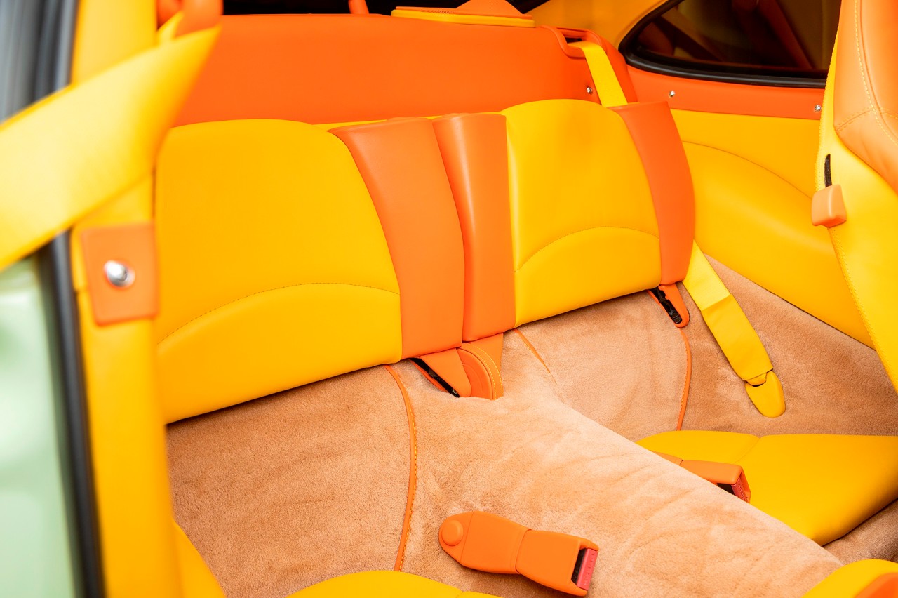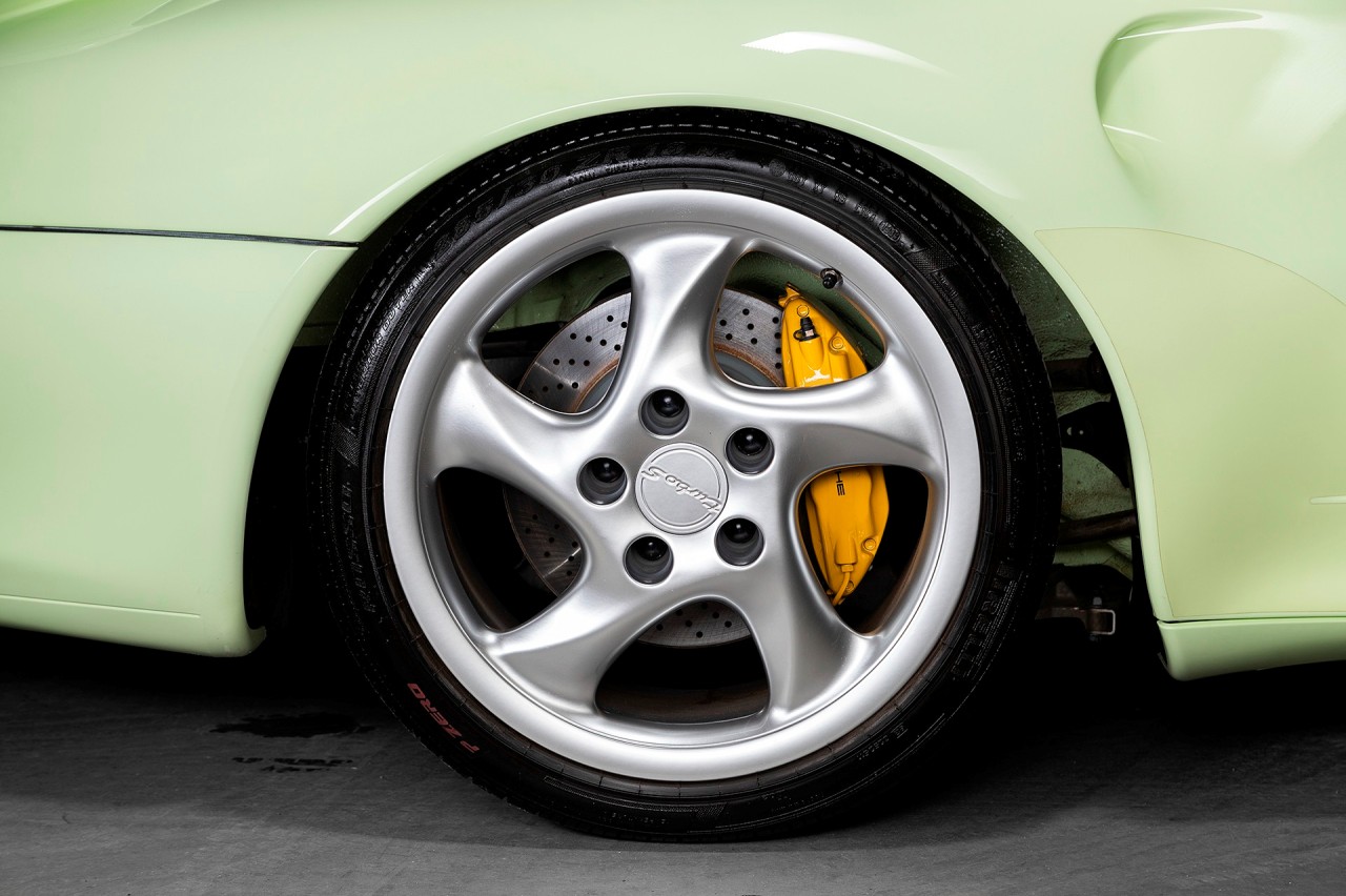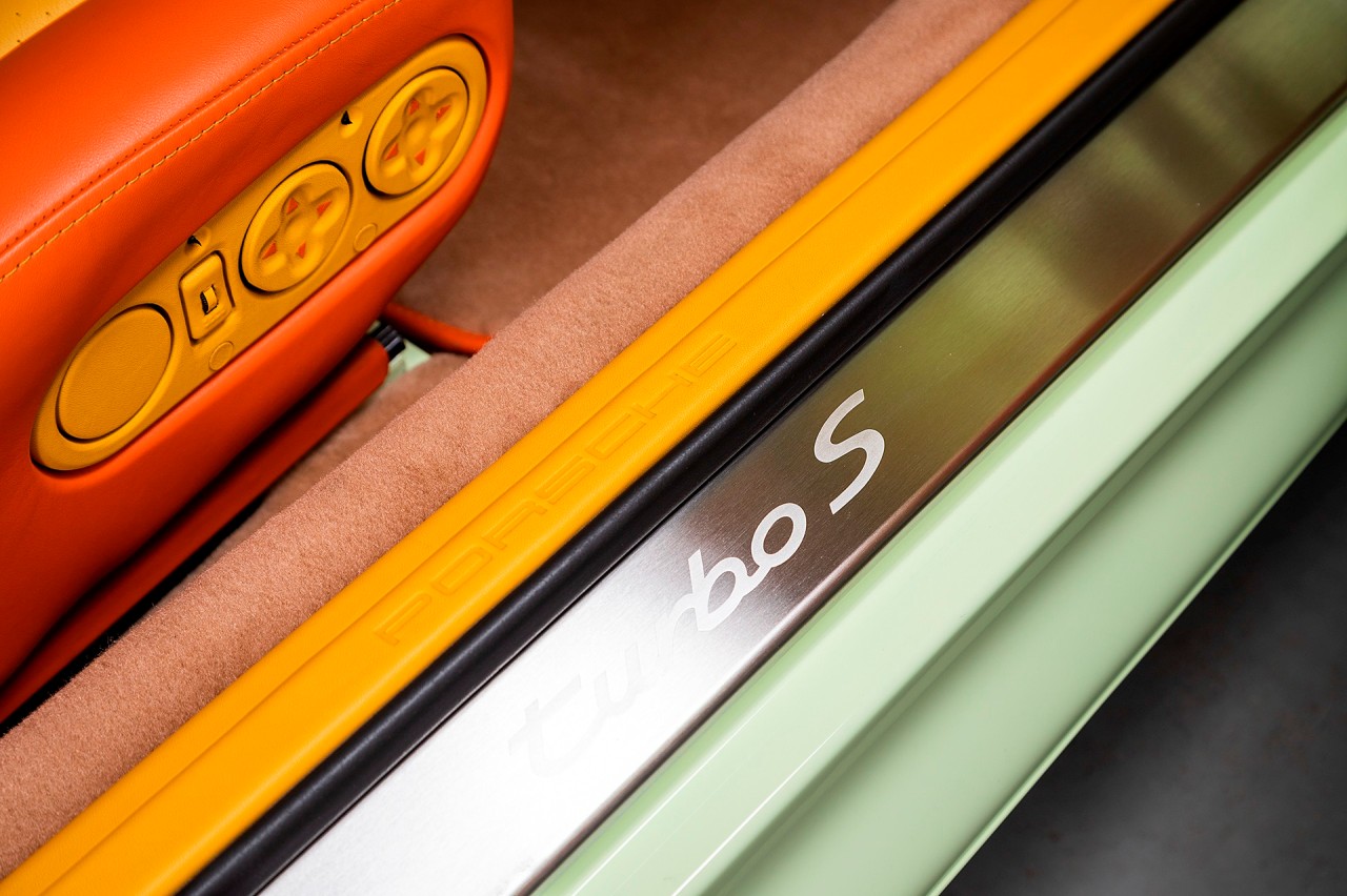 El jeque Nasser Al-Mohammad Al-Sabah, el sexto primer ministro del estado de Kuwait adquirió este Porsche 911 Turbo S (prueba) de la serie 993 en el año 1998. Está terminado en un llamativo Vanilla Yellow con toques verdosos. Luce las llantas Porsche Turbo originales y pinzas de freno en amarillo. A pesar de lo curioso de la pintura exterior, Al-Sabah decidió que el interior también debía estar a la altura.