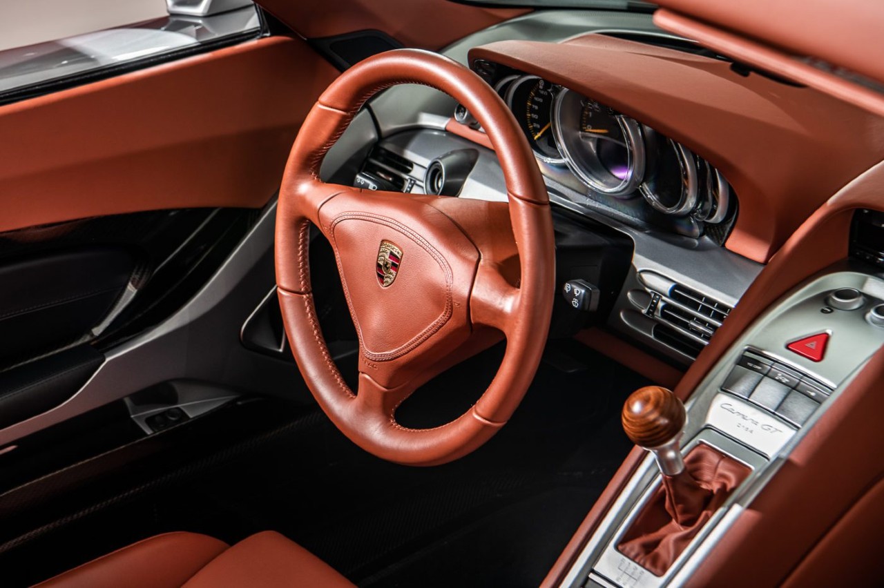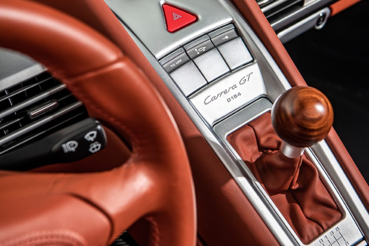 Según el listado del concesionario, este Porsche Carrera GT pertenece a la unidad número 154 de las 1.270 construidas y, como se aprecia en las imágenes del propio DuPont Registry, está en perfecto estado. Incluye el color GT Silver Metallic y tapicería en cuero Terracota en el interior. El historial no menciona su anterior propietario.