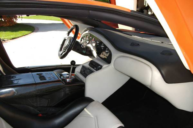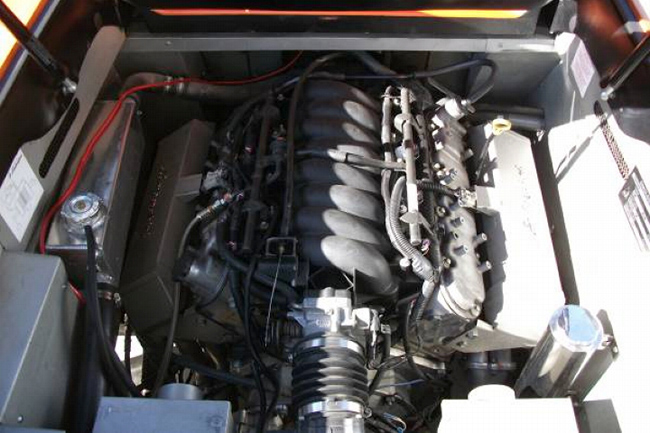 Esta réplica de Diablo que está en venta recurre a un fiable motor Chevrolet V8 LS1 y se asienta sobre un chasis tubular específicamente fabricado para la ocasión. El bloque V8 está ubicado, como el V12 del modelo original, en posición central/longitudinal y tras él encontramos una transmisión manual Porsche 915 de cinco velocidades. Las luces delanteras, por ejemplo, provienen de un Nissan 300ZX (como en el Diablo de verdad), mientras que las señales lumínicas de intermitencia han sido tomadas prestadas de un Pontiac Grand Am.