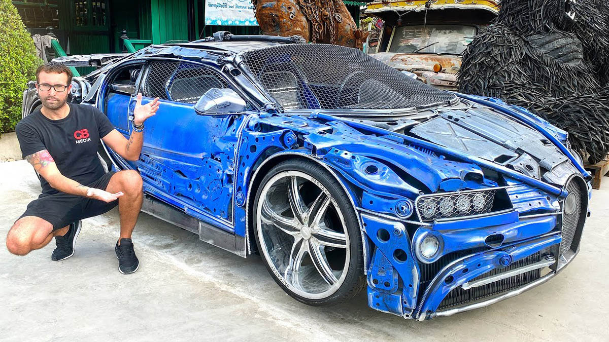 Prepárate para alucinar con la habilidad y la imaginación del artista tailandés Phairote Thanomwong. Él es el artífice detrás de estos dos impresionantes Bugatti Chiron hechos con chatarra que puedes ver en el vídeo que tienes más abajo. Dos coches que han sido creados expresamente para un coleccionista sueco y que están acompañados por numerosas obras de arte incluso más impactantes.