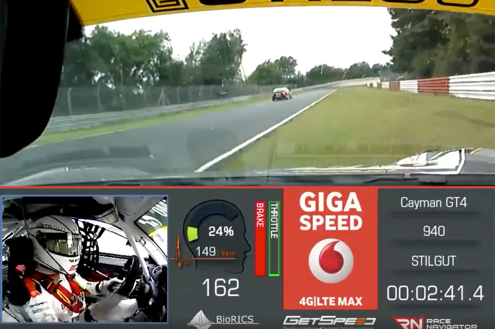 Han sido numerosos los accidentes que se han producido en el Nordschleife -existen vídeos de los años 70-. Esta lista se podía haber engrosado con un Porsche Cayman GT4 Clubsport si no hubiese sido por la pericia del piloto que lo lleva. El protagonista del vídeo llega a alcanzar velocidades superiores a 250 km/h, pero es a 227, al trazar una curva a izquierdas cuando tras un leve salto y a 227 km/h la zaga se descoloca, iniciando los giros rápidos de volante para sortear las barreras del circuito.