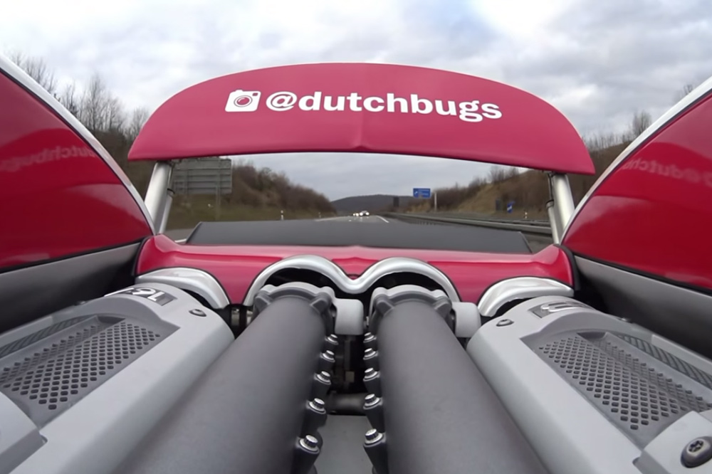 Queríamos mostrarte las imágenes de estos dos Veyron a más de 320 km/h en una Autobahn por varios motivos. El primero es que no todos los días podemos ver a dos unidades de este modelo ‘volando’ juntas a toda velocidad. El segundo motivo es que las imágenes ofrecen una buenísima perspectiva del freno aerodinámico del Veyron en acción (qué rápido es, por cierto).